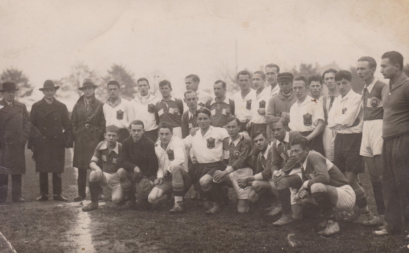 Rēzeknis futbola saceņseibu finalspielis dalinīki, 1926.g. Karteite: Latgolys Kulturviesturis muzeja kruojums.