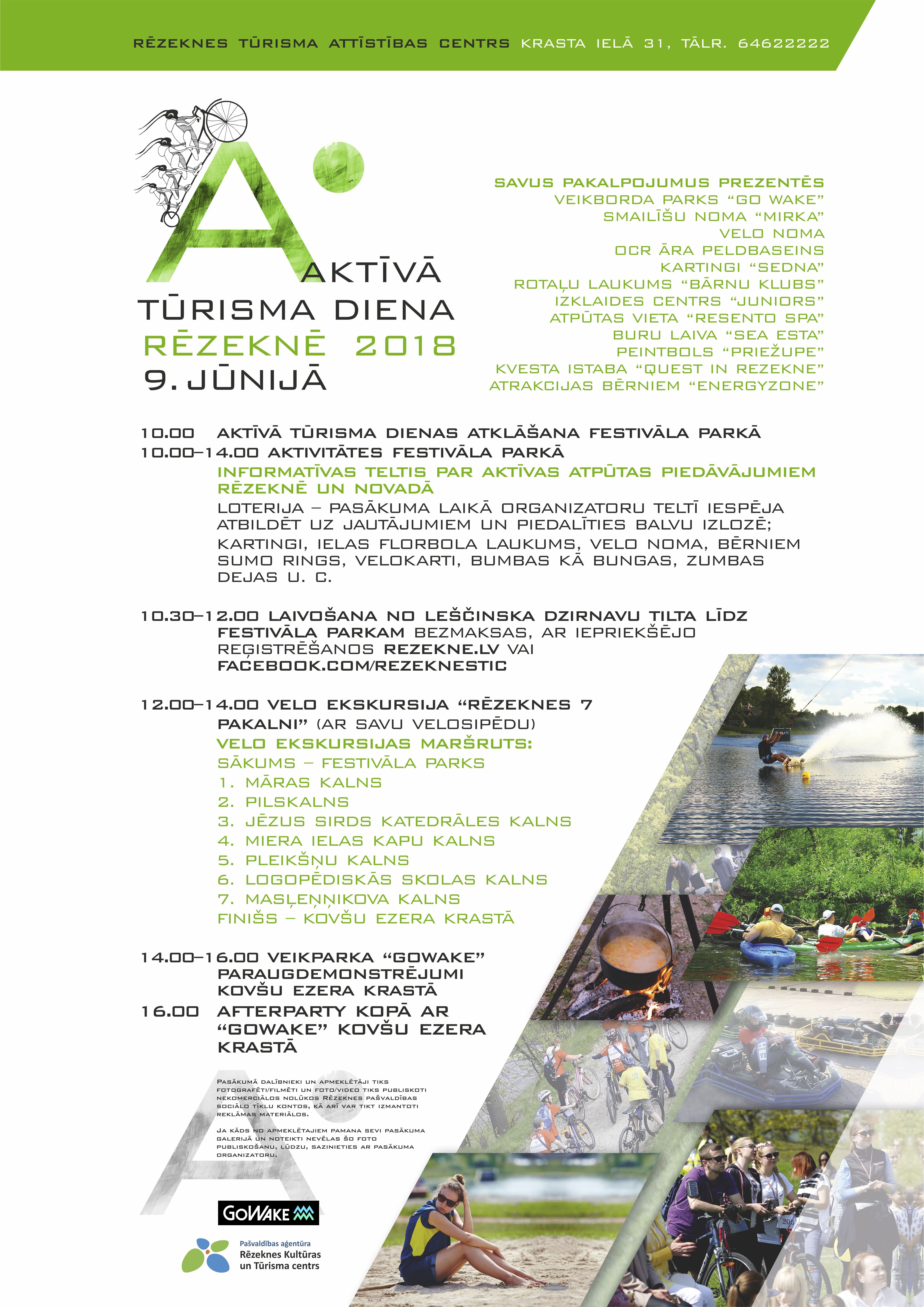 Rēzeknē byus īspieja pīsadaleit Aktivuo turisma dīnā, kurys laikā varēs izzynuot vysu par aktivuos atpyutys īspiejom Rēzeknē i Rēzeknis nūvodā, pīsadaleit laivuošonā pa Rēzekni (ar īprīkšeju registraceju). Ja nav saguojs pīsaregistrēt laivu braucīņam, tod pastuov īspieja jimt daleibu velo ekskursejā “Rēzeknis 7 pakolni” voi sekuot leidza veikparka “GoWake” paraugdemonstrejumim Kovšu azara krostā.