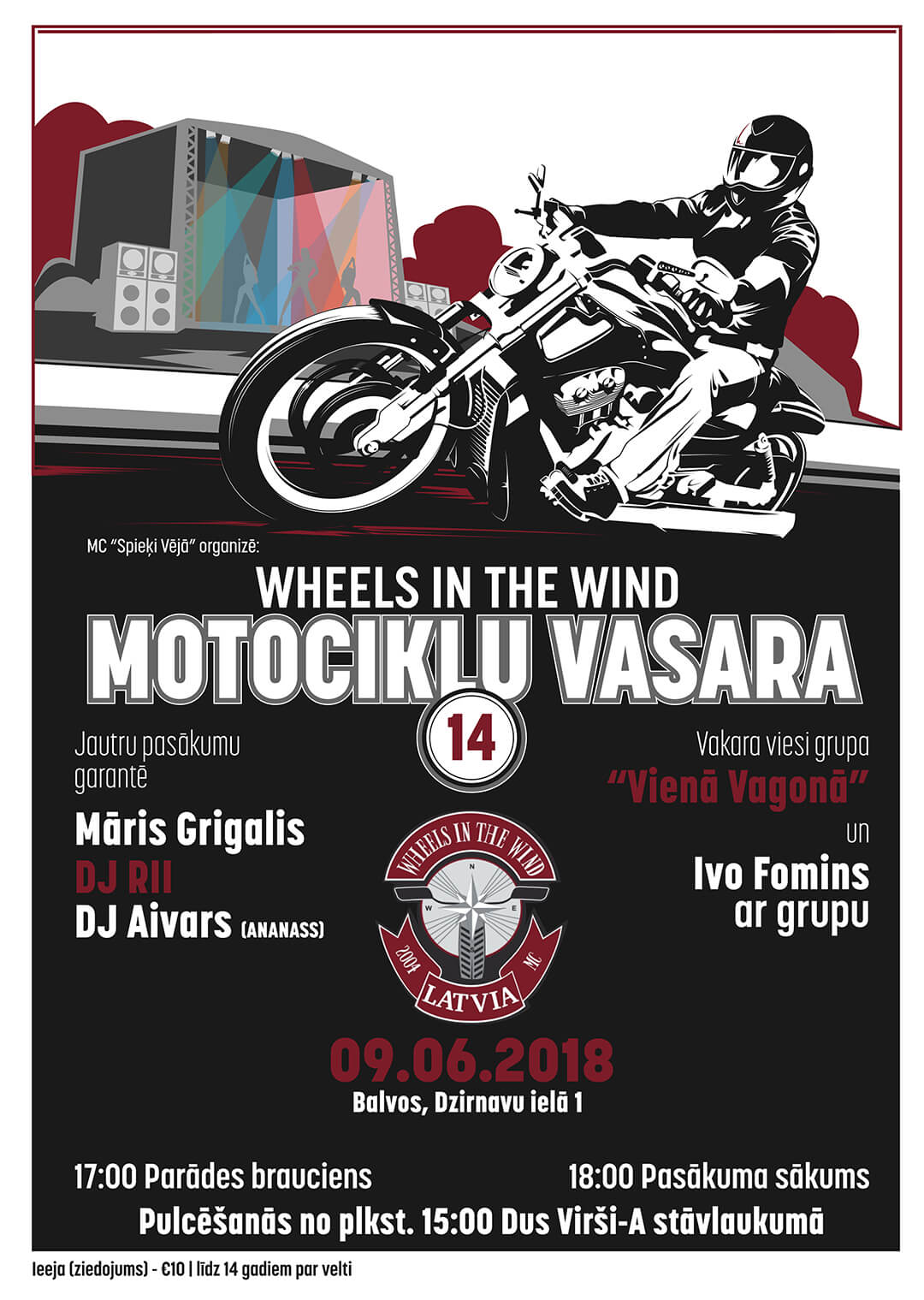 Sastdīnis izskaņā var dūtīs ari iz Bolvim, kur nūtiks jau 14. Motociklu vosora, kas suoksīs 17.00 ar paradis braucīni. Vokora gaitā pasuokuma apmaklātuojus īprīcynuos Māris Grigalis, grupa “Vienā vagonā” i Ivo Fomins ar grupu.