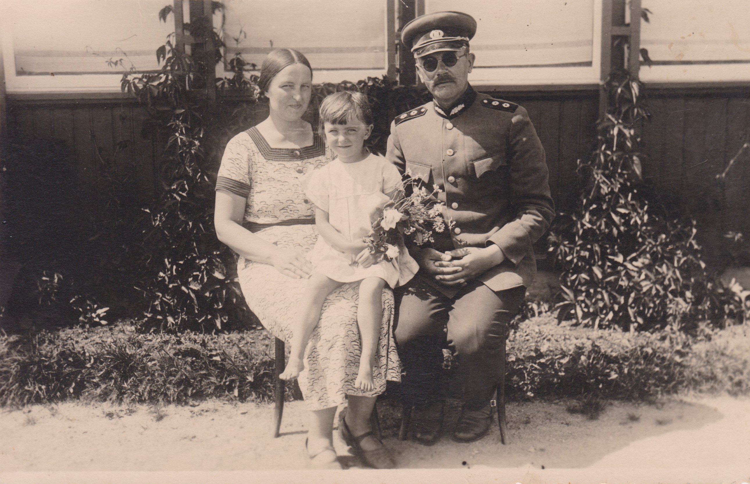 Rēzeknis viersmežziņs Arnolds Kilps (1896 – 1941) kūpā ar saimi, 1936. gods. Karteite: Latgolys Kulturviesturis muzeja kruojums.