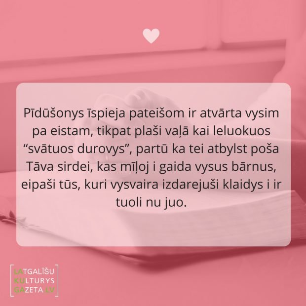 Pāvests Franciskys 24. septembrī apmeklēs Latveju i vadeis Svātū Mišu Aglyunā. Leidz 19. augusta aicynoj registrētīs Aglyunys apmekliejumam, vaira iformacejis rokstā. Portals lakuga.lv apkūpuojs 10 pāvesta Franciska dzeivis atzinis.