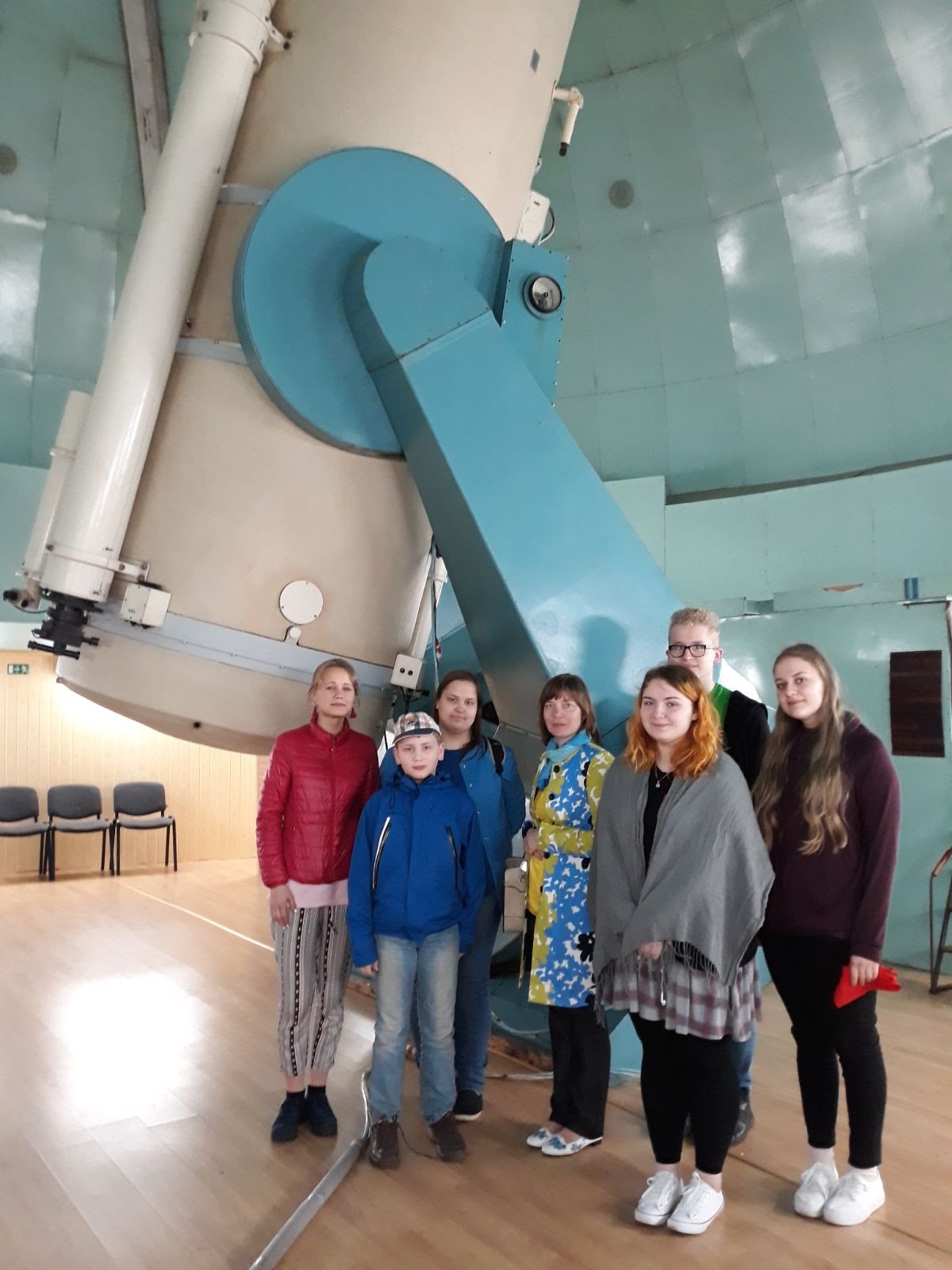Astronomejis puļceņš.Nu kreisuos – Līga Pentjuša, Egīls, Liene Strankale, školuotuoja Liena Poiša, Kristīne Rogozova, Jānis Platacis i Jūlija.