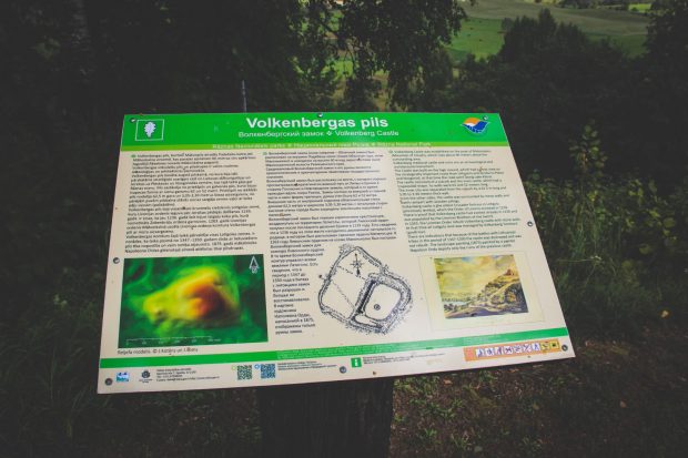 Muokūņkolna viersā atsarūn vīna nu pyrmūs nūcītynuojumu Latgolā – 1252. godā izcaltuos Volkenbergys vydslaiku piļs (nu suoka latiņu volūdā: Wolbenborch, piečuok vuocu volūdā atzeimāta ari kai Wolkenburg, Wolchenburg, Wolkinburg, taišni puormejūt – Muokūņpiļs) – drupys. Ir viests, ka sovulaik piļs bejuse nu diveju daļu – prīškpiļs i golvonuos piļs, kurymai bejuse trapecis forma. Volkenbergys piļs calta augstā piļskolnā, nu kuruo sovulaik beja labi puorsaverams strategiski svareigais ceļš, kurs guoja gar Rāznys azaru, nu Lītovys dižkunigaitejis i Jersikys iz Pleskovys i Novgorodys zemem. Volkenbergys piļs bejs iz vysa senejuokais krystnešu cītūksnis Lotigolys zemē, kurū Livonejis ordiņs dabuoja piec Jersikys pādejuos daleišonys 1239. godā. Ir viests, ka 1236. godā ite bejuse latgaļu kūka piļs, kurymā apsamete Zūbynbruoļu ordiņa garnizons, bet 1263. godā Livonejis ordiņs Muokūņkolnā izcēle ordiņa komtura pili ar myura aizsorgsīnu.