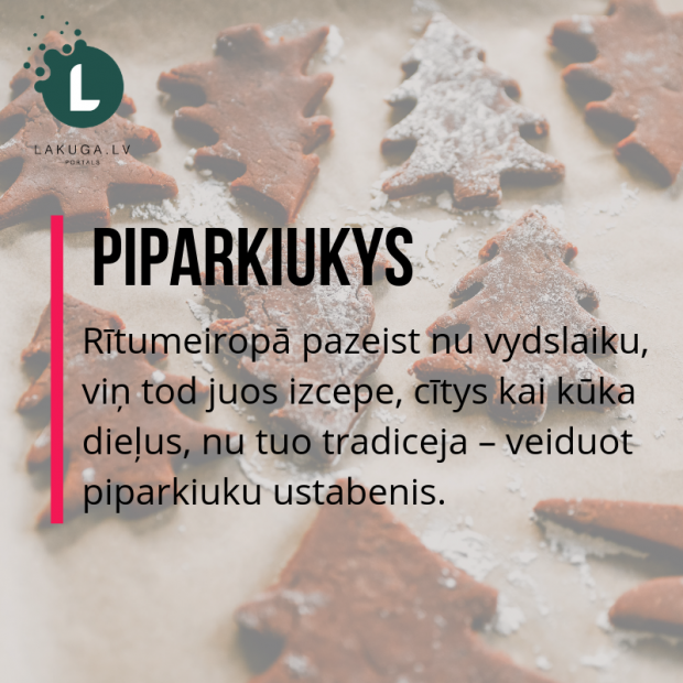 Tradicionali katuoli Zīmyssvātku vigilejā īvāroj gavieni – atsatur nu galis i pīna iedīņu. Studini i malnuos aba ozbora ašņa dasys ād 25. decembrī i turpmuokajuos dīnuos. Tok soldonumus Kūču vokorā na viņ dreikst, bet ari simboliski vajag. Pyrma symta i vaira godu soldonumi Latgolā asociejuos ar pernīkim i cukerkom (kampetom), kū varēja nūpierkt pi žeida. Pūļu piernik (ari latgalīšu pernīks), krīvu пряник, lītuvīšu meduolis ir leidzinīki vuocu Pfefferkuchen, pamatā – mads i pyparu kombinaceja. Piparkiukys Rītumeiropā pazeist nu vydslaiku, viņ tod juos izcepe, cītys kai kūka dieļus, nu tuo tradiceja – veiduot piparkiuku ustabenis.