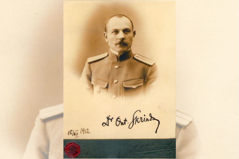 Aiz cara armejis kara uorsta skorbuos profesejis sliepās naīdūmojami interesants, galants i laipnys veirīts ar gaišom dūmom, pruotu i sirdi. Piec juo napalyka ni dīnysgruomotys, ni autobiografejis, partū informaceja par Ontonu īgiuta nu juo tivinīku, draugu i paziņu īguodu, kurys globojās Daugovpiļs nūvoda Vabalis pogosta Skryndu dzymtys muzejā. Skryndu dzymtys pyrmsuokumi ir vaicojami Kūrzemis pusē. 18. godu symtā grafim Plāterim-Zībergim Leiksnys muižā īsavajadzēja lobu i zynūšu struodnīku. Mainis ceļā nu Skrundys tyka puorvasts lobs myurnīka omota pratiejs Donats. Tai kai saime tyka īceļuojuse Latgolys pusē nu Skrundys, tod grafi, pīskaņuodami pavuordi latgaliskai videi, nūsauce saimi par Skryndom.