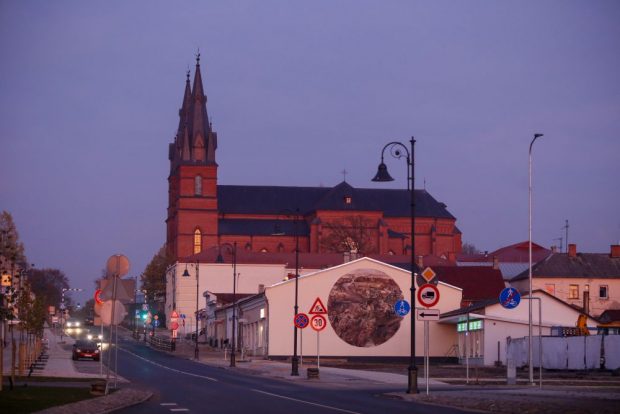 1887. godā nu zibiņa nūdaga kūka bazneica, 1893. godā Floriana fon Viganovska vadeibā izcēle lelu sorkonūs ceglu myura bazneicu. Šudiņ tei ir Vyssvātuokuos Jezus Sirds Rūmys katuoļu katedrale, kas puorstuov neogotikys i neoromanikys stilus. Voldemārs Ivdris atguodoj, ka padūmu laikā gidim vajadzēja saceit, ka sorkanajai bazneicai muokslinīcyskys vierteibys nav. Bet, pasaverūt nu piļskolna vacuo centra vierzinī, bazneica kai spūdra dominaņte kryta acīs. Vēļ Voldemārs atguodoj Atmūdys laikā par bazneicu palaistū “peili”: “Peile beja palaista taida, ka sorkonuos bazneicys pogrobūs Tautys froņte vuoc īrūčus, tī jau savuokti lobi īrūču kruojumi i nazkurūs niu saus nūst. Izaruodeja, ka bazneicai vyspuor nav pogrobu. Bet tai, kas bejuse kūka baroka bazneica, pogrobūs gon globuoja kai kopsātā. Piec nūdegšonys it kai atroduši, ka cīš gars veirīts paglobuots.”