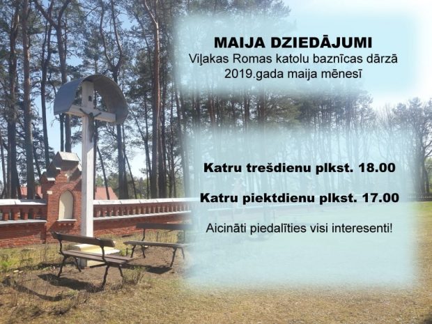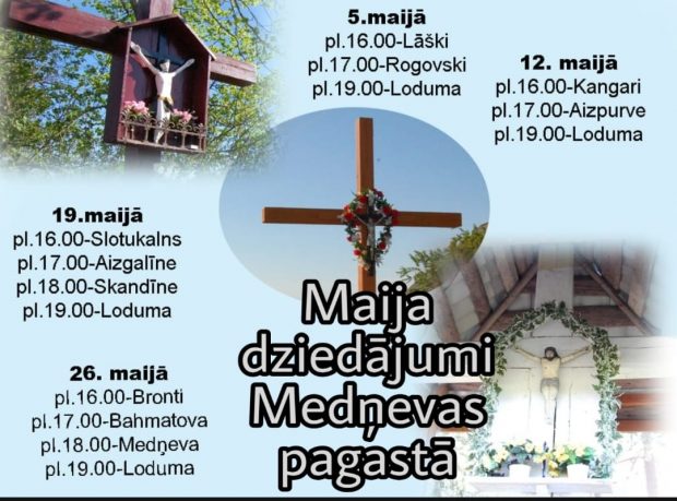 Tī nūtiks kotra mieneša svātdīnē Medņovys pogostā. 5. majā dzīduošonu suoce 16.00 pi Lāšku krysta, i kotru svātdīni dzīduojumi nūsaslēgs 19.00 pi Lodumu cīma krysta. Sovpus kotru trešdīni 18.00 i kotru pīktdīni 17.00 stuņdēs var pīsadaleit dzīduojumūs Viļakys Rūmys katūļu bazneicys duorzā.