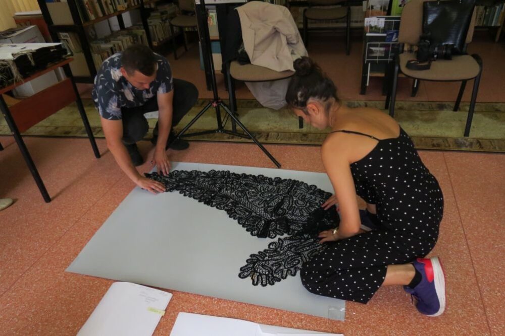 Pošlaik Latvejis regionūs nūrit apjūmeiga akreditātūs muzeju prīškmatu digitalizaceja – muzeju vierteibys teik fotografātys, skenātys i padareitys daīmamys škārsteikla vidē. Nu 15. da 17. juļa Kulturys informacejis sistemu centra specialisti sadarbeibā ar Latgolys Kulturviesturis muzeja (LKM) darbinīkim div dīnu laikā digitaliziejuši 1150 kruojuma prīškmatus, informej LKM kruojuma nūdalis specialiste Evita Kozule.