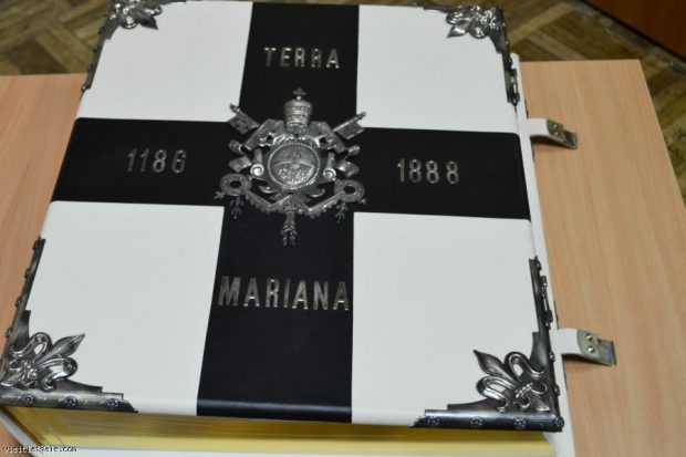 Latgolys skoti i informaceja par senejom Livonejis pilim, bazneicom īkļauta unikalā albumā “Terra Mariana” (1888), kas globojās Rūmā, Vatikana Apustuliskajā bibliotekā, tei pāvestam Leo XIII atsyuteita kai duovona nu Baltejis katuoļu prīstereibys 50 godu jubilejā, teksta autors beja Latgolys viesturnīks, publicists G. Manteifeļs. Izdavums ir lelformata (61×45 cm) 70 pergamentu foliants, vuoks taiseits nu pluonys kozysuodys i dekorāts ar pavesta gierbūni i burtim zaltā i sudobrā. Albums īlykts ar sudobra kolumim puškuotā kūka futralī. Albums 1903. godā Reigā tyka izdūts vēļreiz, mozuokūs izmārūs, ar tekstu vuocu volūdā i malnboltim attālim. 2011. godā izdavums pīdzeivuoja faksimilizdavumu.