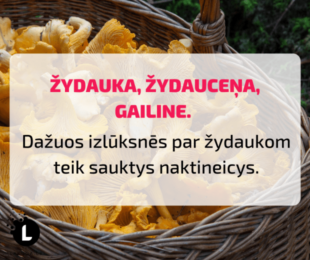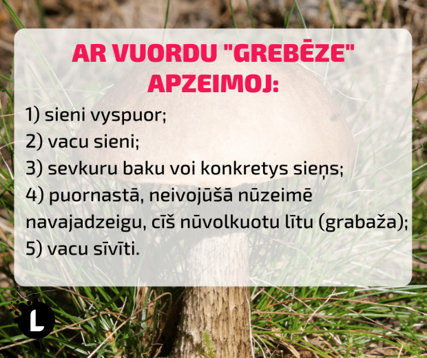 Voi zinit, kas ir grebēze, gūmeiza, žydauka, čygonka, pakass, skrimiļdzs, mašarnīks, vuškineica, vylka tabāks? Latgalīšu sieņu nūsaukumūs orientētīs nav vīgli, partū ka itūs apzeimuojumus attīcynoj iz vairuokom sienim i na viņ sienim. Kab tei byutu viņ lingvistiska problema! Kod tys pats vuords paīt iz ādamom i iņdeigom sienim, tys roda situaceju koč kū liktineigi sajaukt.