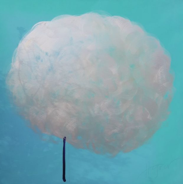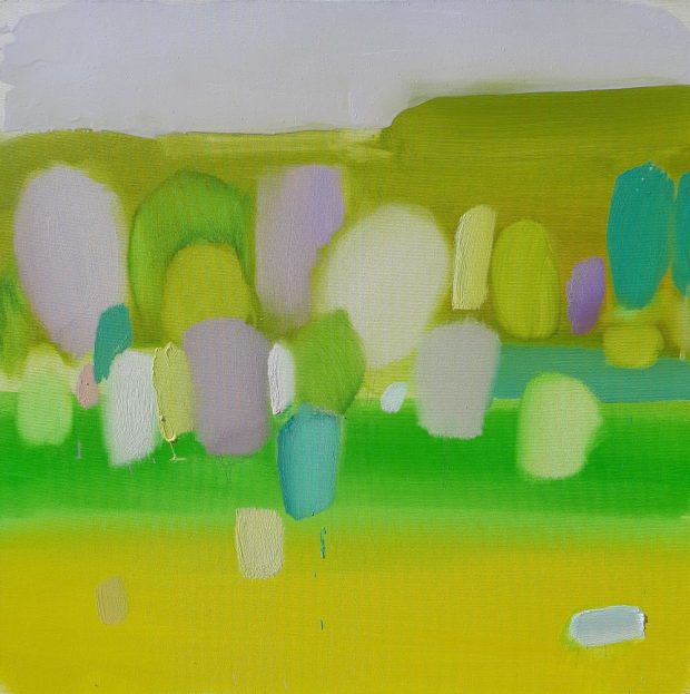 Pateik maņ vysi godalaiki. Kaids godalaiks, taidu gleznoju: rudiņ – rudini, pavasar – pavasari. Ir dreizī dorbi, ir lānī dorbi. Niu struodoju lānū dorbu. Nūpļauts maureņš ar boltū duobuleņu, kur daudz, daudz zuolis – meditativi līku lapeņu pi lapenis. Itys ir koloristikys dorbs, zaļs vīnā tūnī byutu par garlaiceigu. Vāsī, syltī, kaids kūšuoks tūneits biļdē dorbuosīs kruosu leidzsvorā.