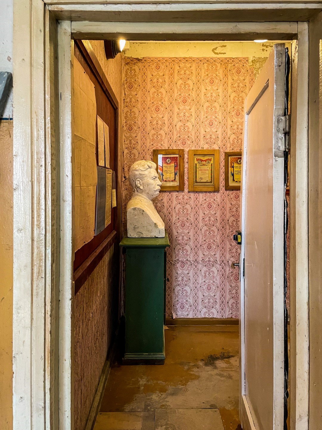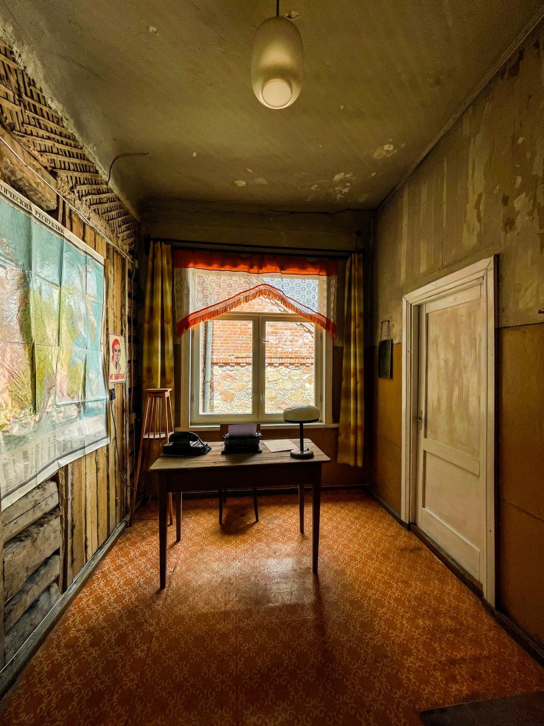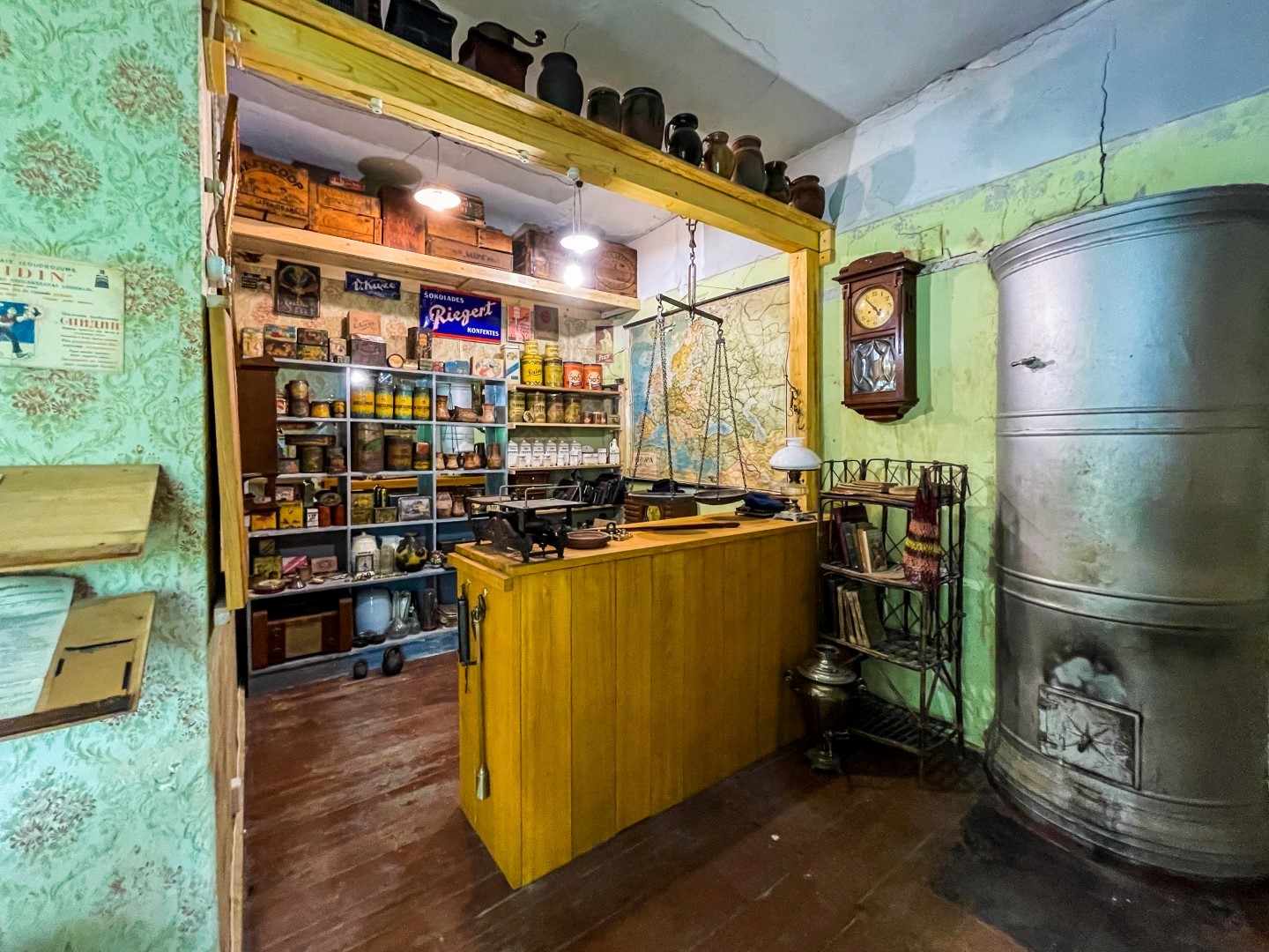 Itei divstuovu āka ir lela, nu 300 m2 pagaidom izmontuots mozuok par pusi, vēļ ir breiva plateiba, kur izavērst. Atteistu idejis, ka kotrā ustobā, kas kotra ir bejušais dzeivūklis, byus kas sovs. Partū nūsaukumu “Abrinis ustobys” lītoju daudzskaitlī. Veikala telpa i NKVD kabinets jau īkuortuoti. Viesture palīk viesture, ari Viļakys “styura muoja” ir svareigs viesturis pūsmys. Tymā pat stilā pīduovoju ari vacūs ritiņu nūmu, varēs izbraukt pa Viļaku kaidu riņči. Daži ritini ražuoti pat pyrms kara, bet puorsvorā “Sarkanās zvaigznes” produkceja, kas īsakļaun periodā leidz 1960. godam.