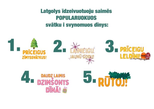 Pamatojūtīs iz anketiešonys datim, juosacynoj, ka Latgolys īdzeivuotuoju saimēs popularuokūs svātku i svynomūs dīnu vydā pyrmom kuortom izceļami Zīmyssvātki (98,3%), Jaunais gods (97,5%), Leldīne (97,3%), dzimšonys dīna (97,2%) i Juoni (97%).