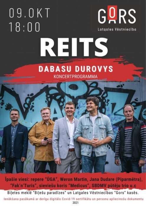 9. oktobrī 18.00 stuņdēs Latgolys viestnīceibā GORS byus grupys “Dabasu Durovys” koncerts “Reits”. Piec grupys dalinīka Arņs Slobožanina stuosteituo, koncertā byus vareiba dzierdēt gon vacuokys, gon ari pavysam svaigys dzīsmis.