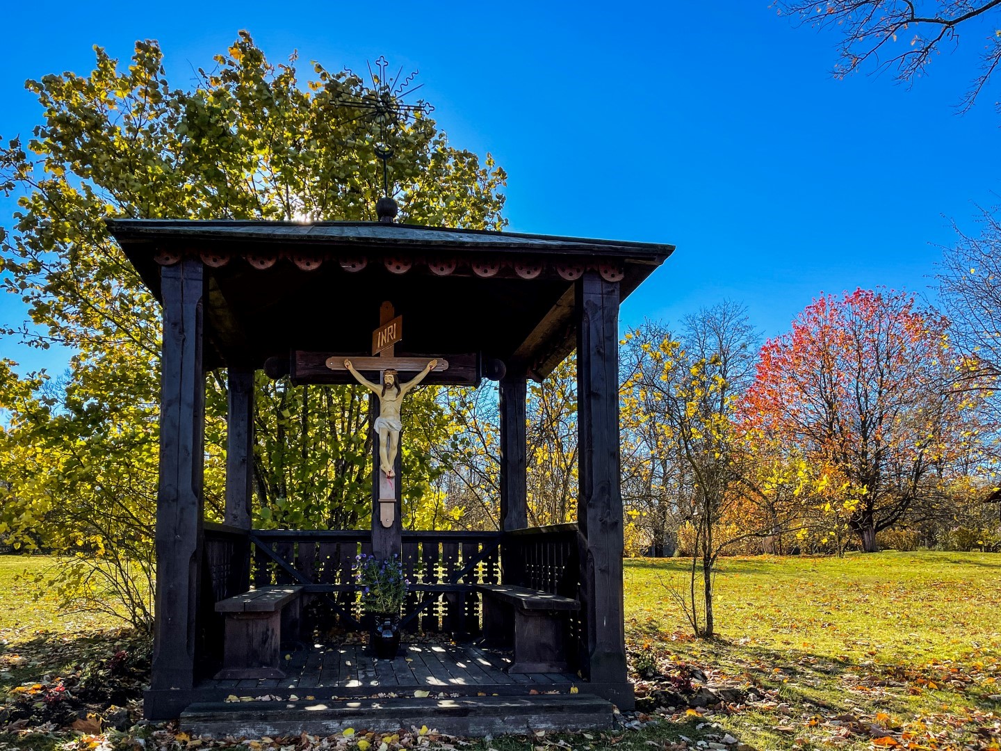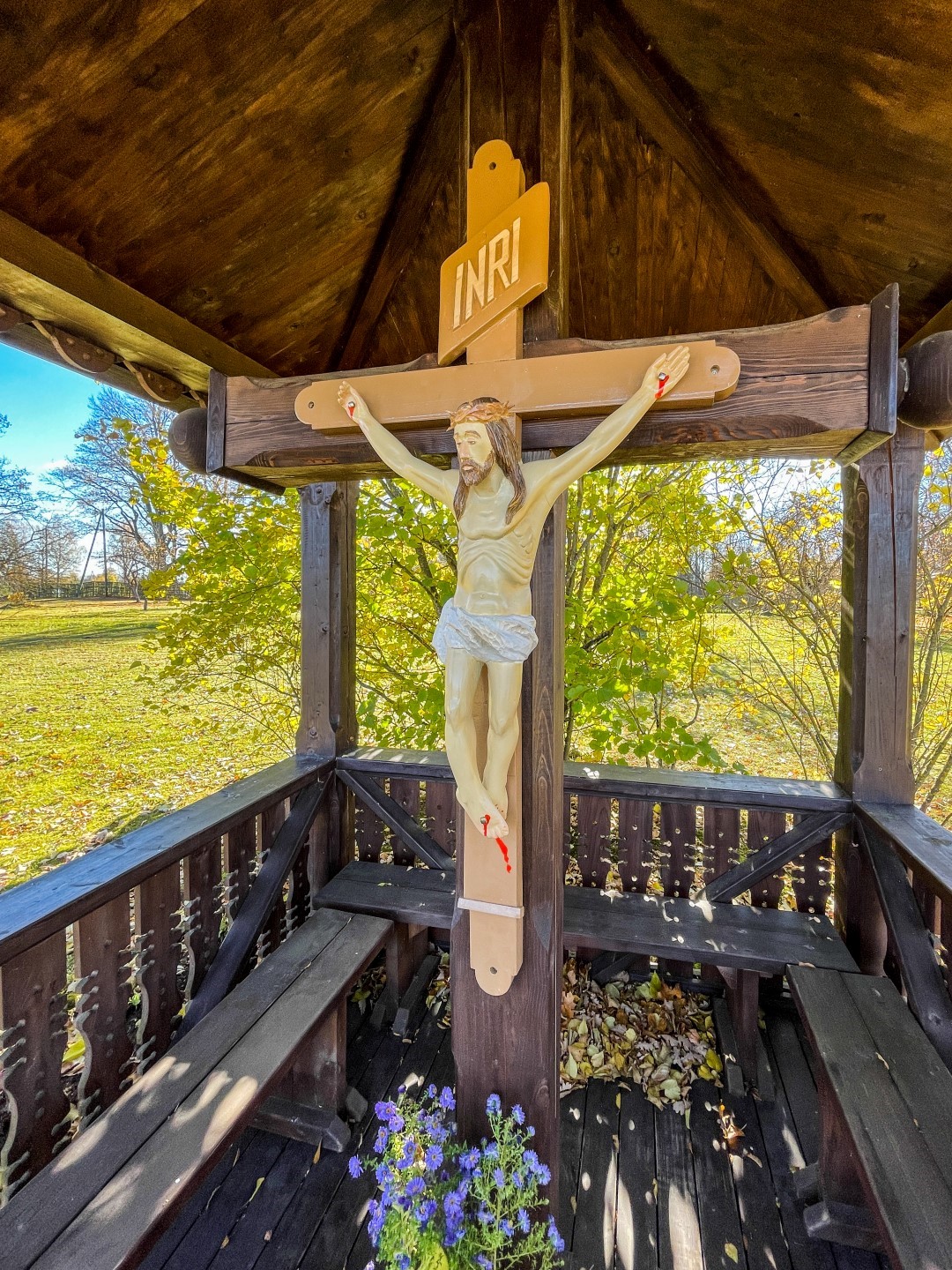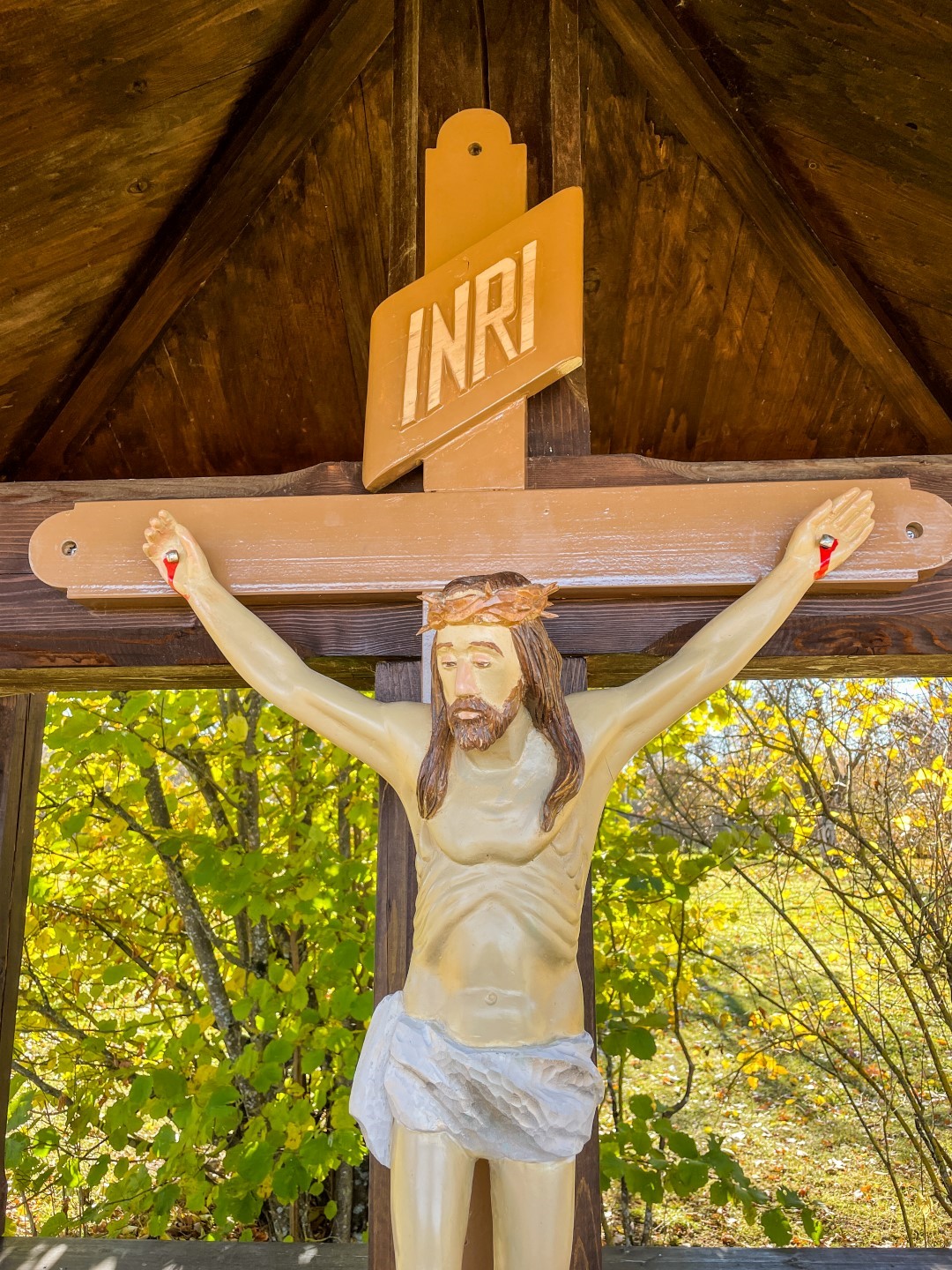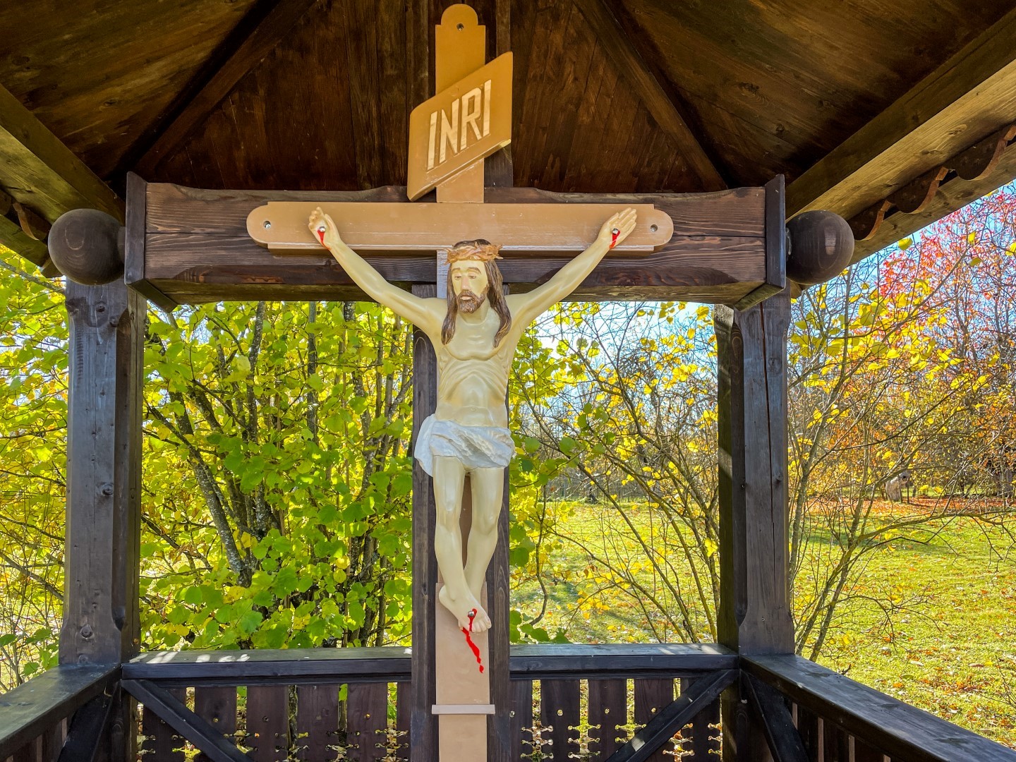 Ari F. Trasuna muzeja “Kolnasāta” uobeļu suodā ir krucifikss, ar kura atkluošonu 1991. godā aizasuoce gareidznīka, politiķa, kulturys i sabīdryskuo darbinīka F. Trasuna pīminis atjaunuošona Latgolā. Itū krystu darynuojs kūktieļnīks O. Rancāns. Ar aizlyugumu pi krysta parosti suocās vysi leluokī pasuokumi muzejā. Majā pi krysta kotru dīnu puļcejās vītejī ticeigī, kab veļteitu lyugšonys Jaunovai Marijai. Tok itūgod ticeigūs puorsteidze napateikams nūtykums – maja suokumā nu krysta beja pazuds Jezus Kristus tāls. Vysi mekliejumi, sadarbeibā ar Vaļsts policeju, beja naveiksmeigi.”