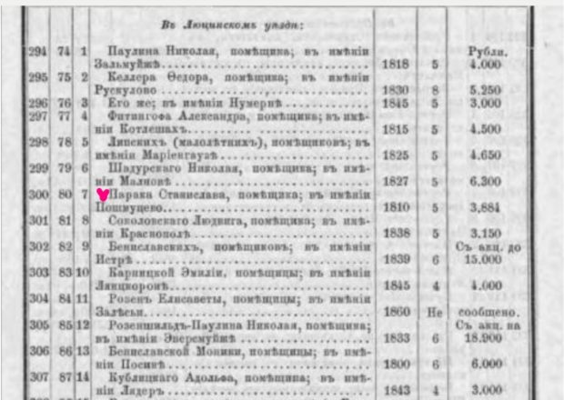 19. godu symta Pušmucovys atteisteiba saisteita ar slovonuo italīšu arhitekta Antonio Parako dzymtu. 18. g. s. grafu Plāteru Kruoslovā dorbuojušīs treis arhitekti ar uzvuordu Parako (Parocco): Antonio, Francisks i Dominiks. Piec dorbu pabeigšonys Kruoslovā, Pīdrujā i Drujā Dominiks atsagrīzs Itālejā, Antonio i Francisks apsamatuši Latgolā, Ludzys apriņčī, iz palikšonu. Piec V. Klešnika atrostajim olūtim, 1832. gods Ludzys apriņča muižinīku sarokstā pīmynāta Pušmucovys foļvarka ar 204 “dvēselem”, kuru rentēja Dominiks (krīvyski Dementijs) Paraki, Dominika dāls, 56 godus vacs. Izziņā par muižnīku tīseibu apstyprynuošonu 1829. godā pīmynāts muižnīks Antonio. 1844. godā Dominiks nu muižys rentnīka palyka par eipašnīku.