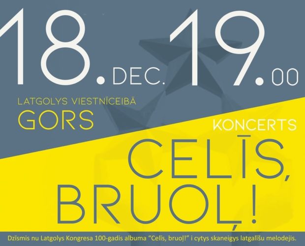 Sastdiņ, 18. decembrī, Latgolys viestnīceibys GORS lelajā zālē izskanēs jau četrys reizis puorcaltais koncerts “Celīs, bruoļ!”. Tymā dzīsmis nu Latvejis Symtgadis Latgolys Kongresa muzykys izlasis albuma ar taidu pošu nūsaukumu “Celīs, bruoļ!”.