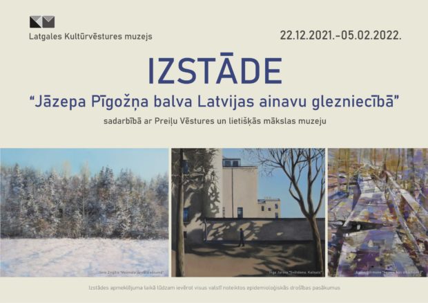 Nu 22. decembra da cytagods 5. februara Latgolys Kulturviesturis muzejā apsaverama daļa nu 2021. gods konkursa “Jāzepa Pīgožņa balva Latvijas ainavu glezniecībā” izstuodis, kas atceļuojuse iz Rēzekni nu Preiļu, viesteits Rēzeknis vaļstpiļsātys dūmis sātyslopā.