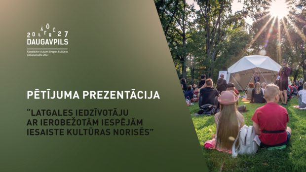30. martā 15.00 stuņdēs Zoom platformā nūtiks pietejuma “Latgales iedzīvotāju ar ierobežotām iespējām iesaiste kultūras norisēs” prezentaceja, informej dasacejuma “Daugavpils 2027” komunikacejis specialiste Jelena Dedele.