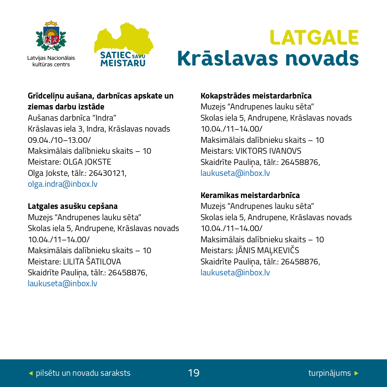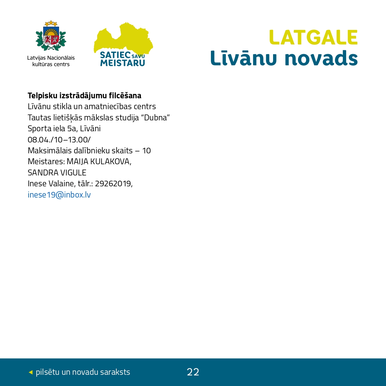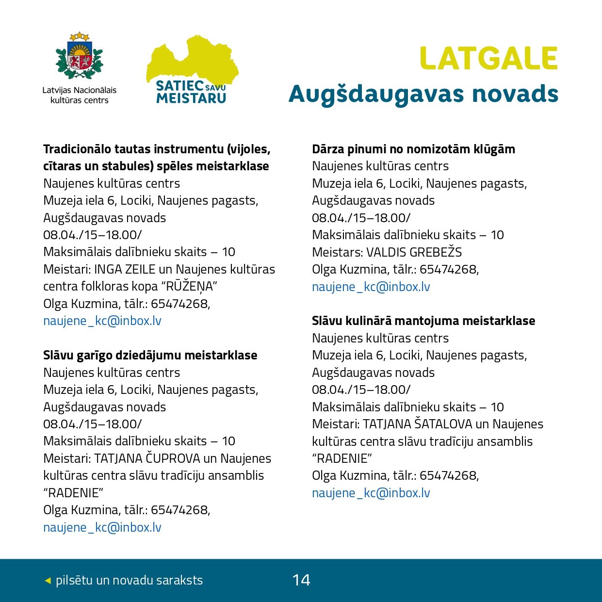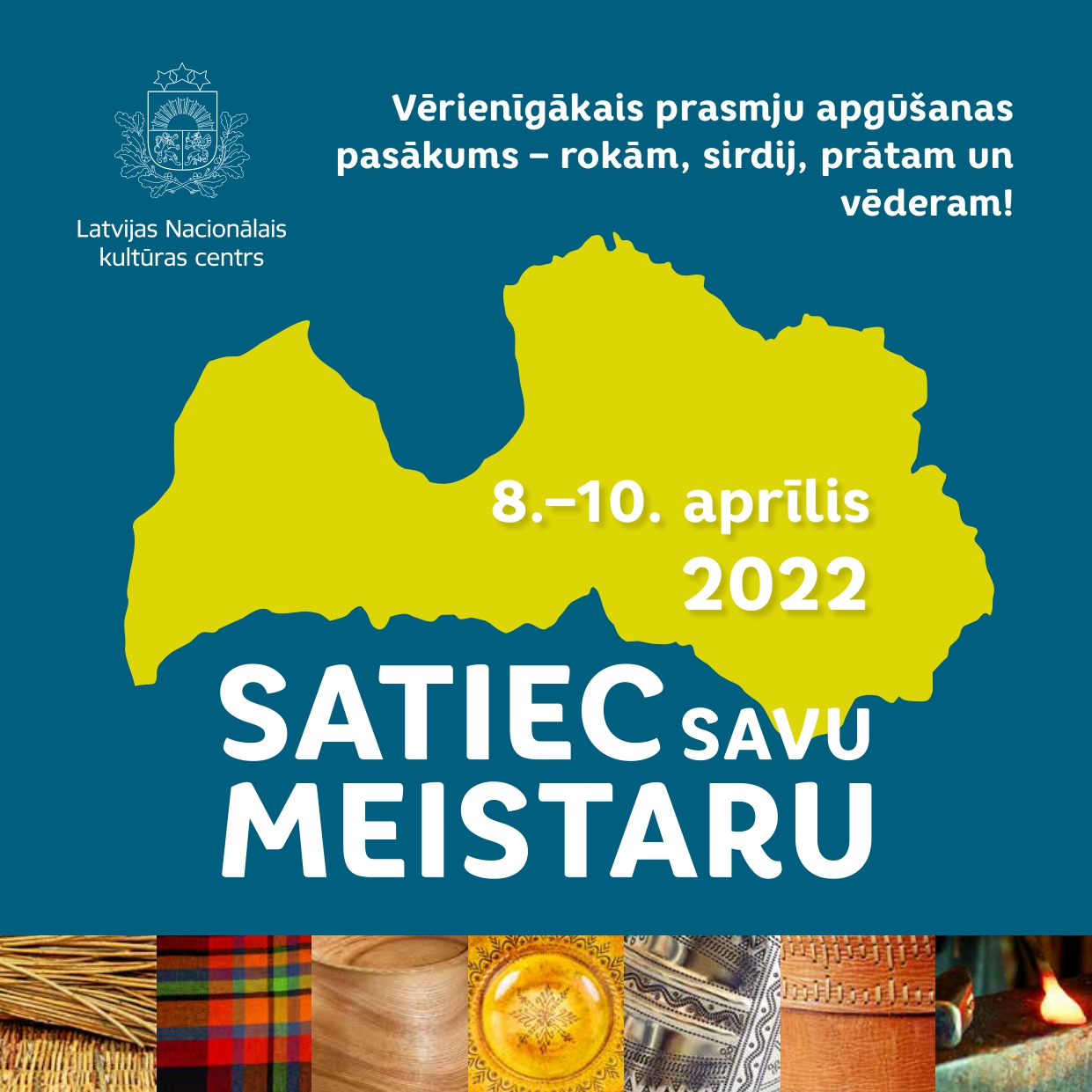 2022. gada 8., 9. i 10. aprelī jau četrpadsmytū reizi nūtiks pasuokums “Satiec savu meistaru”. Itymā pasuokumā pa vysu Latveju pīsadaleis vaira nakai 115 nūtikšonys vītys i 225 meistari.