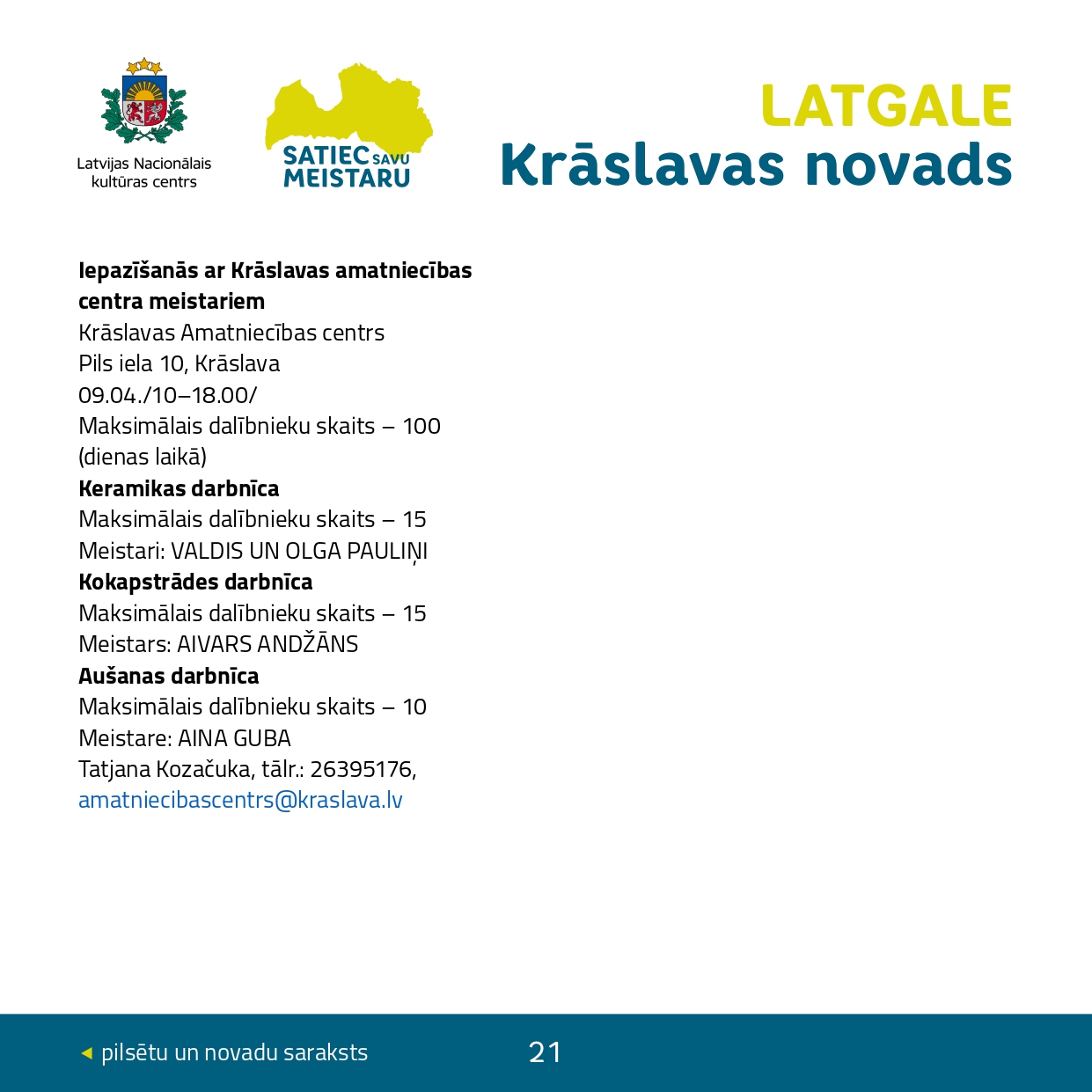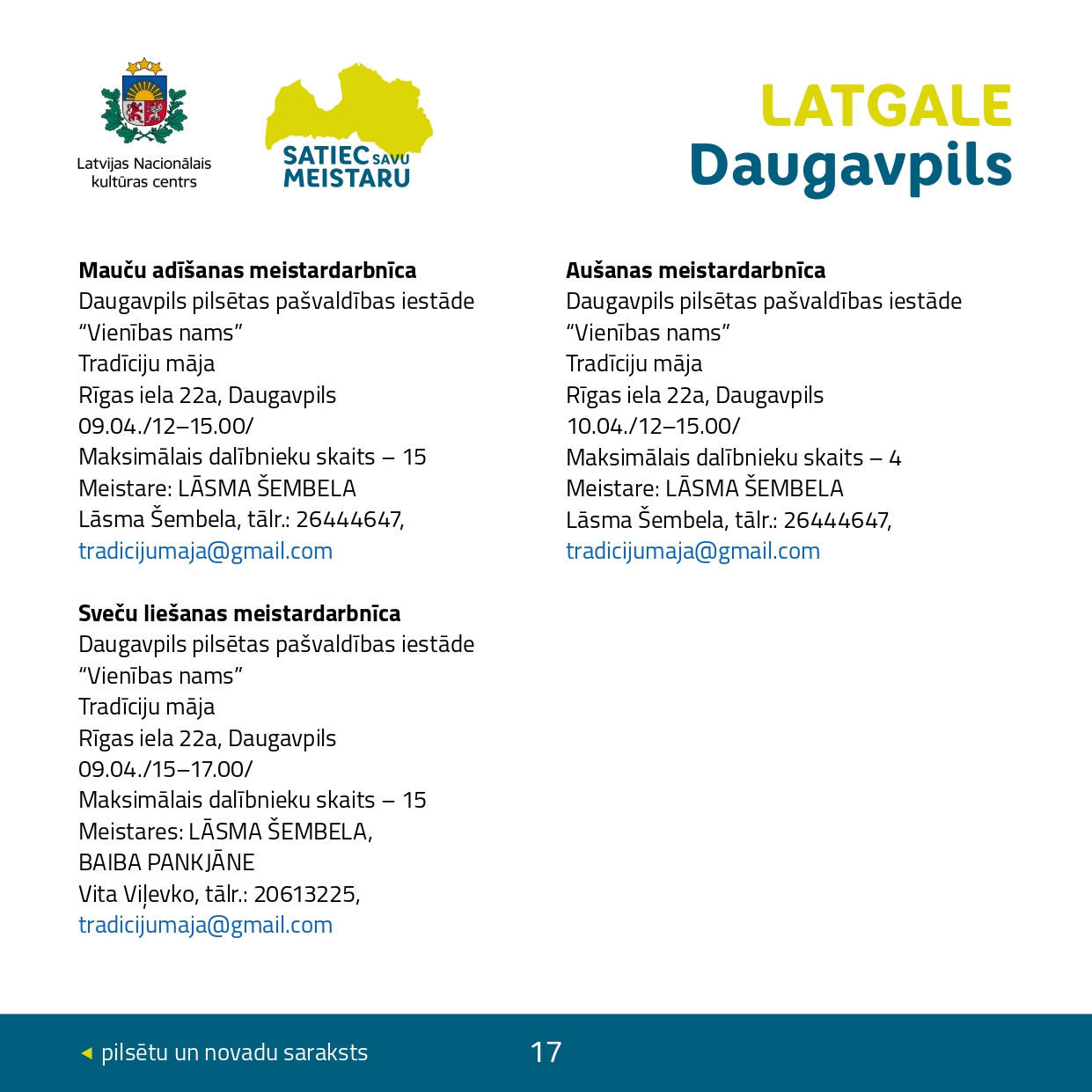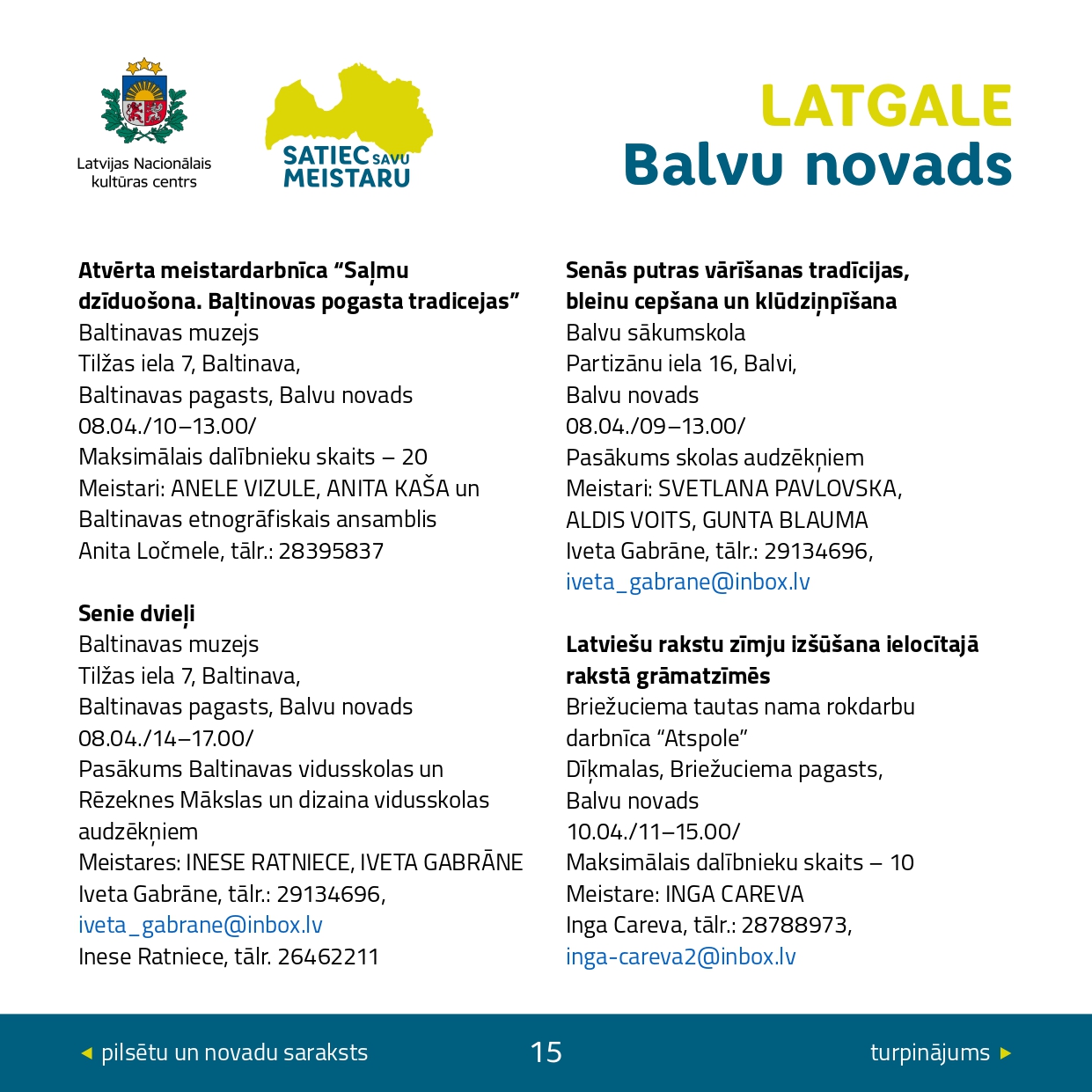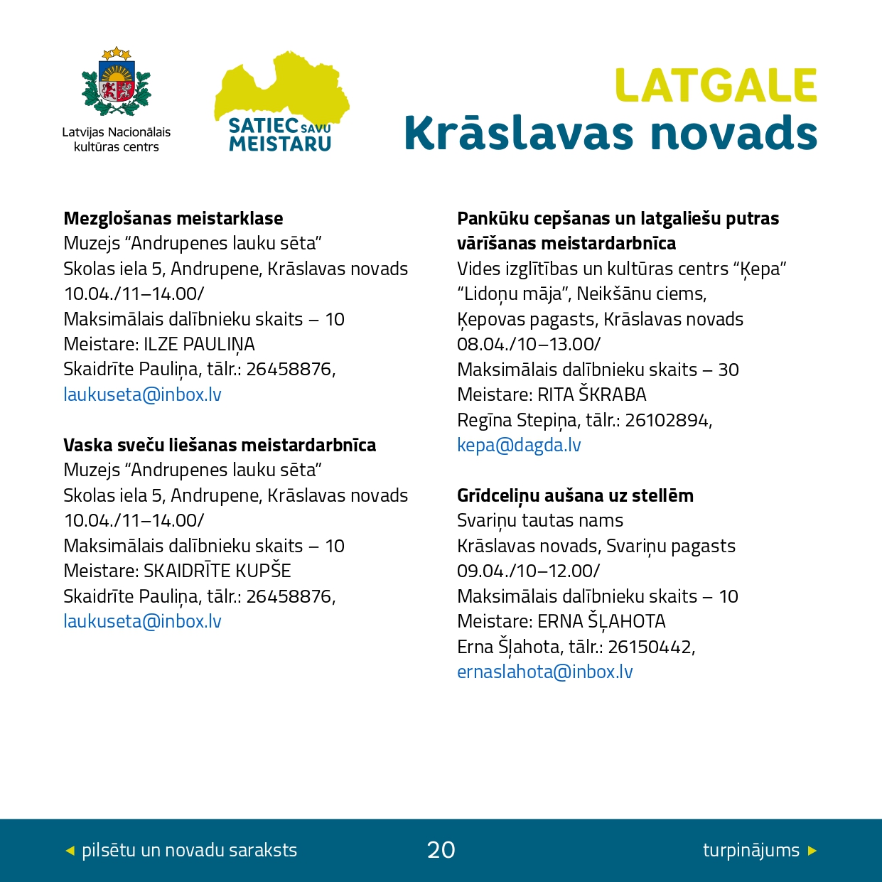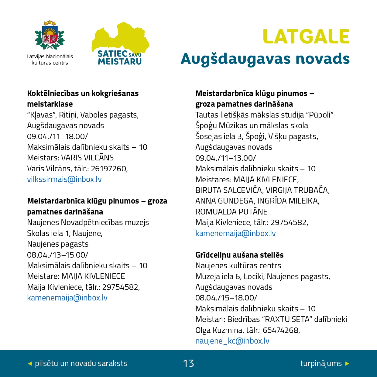 2022. gada 8., 9. i 10. aprelī jau četrpadsmytū reizi nūtiks pasuokums “Satiec savu meistaru”. Itymā pasuokumā pa vysu Latveju pīsadaleis vaira nakai 115 nūtikšonys vītys i 225 meistari.