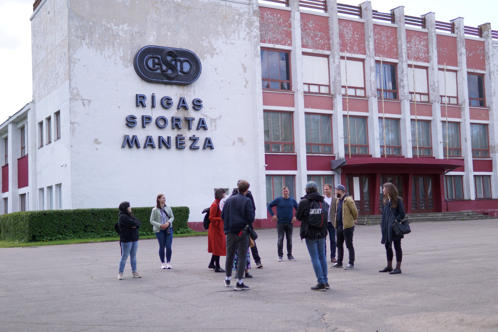1965. godā Moskovys duorza teritorejā izcēle Reigys sporta manežu, kuruos arhitekti beja Viktors Mellenbergs i Edvīns Ābuls (pyrmais ir leidzautors ari daudzim zynomajai Dzintaru koncertzalei, kura calta vēļ 1936. godā). Tūlaik paradzāta 3500–5000 skateituojim (itūšaļt 2400 vītys), maneža beja vīna nu modernuokūs Padūmu Savīneibā – ite pyrmū reizi PSRS vīglatletikys skrejceleni tyka nūkluoti ar kaučukveida sagumu[2]. Ākā atsaroda ari smogatletikys i treneņu zalis, rehabilitacejis centrs, sova kopejneica-bars i pierts. Maneža nūzeimeiga ar tū, ka 1988. godā tamā nūtyka legendaruos Zigmara Liepiņa rokoperys “Lāčplēsis” pyrmizruode.