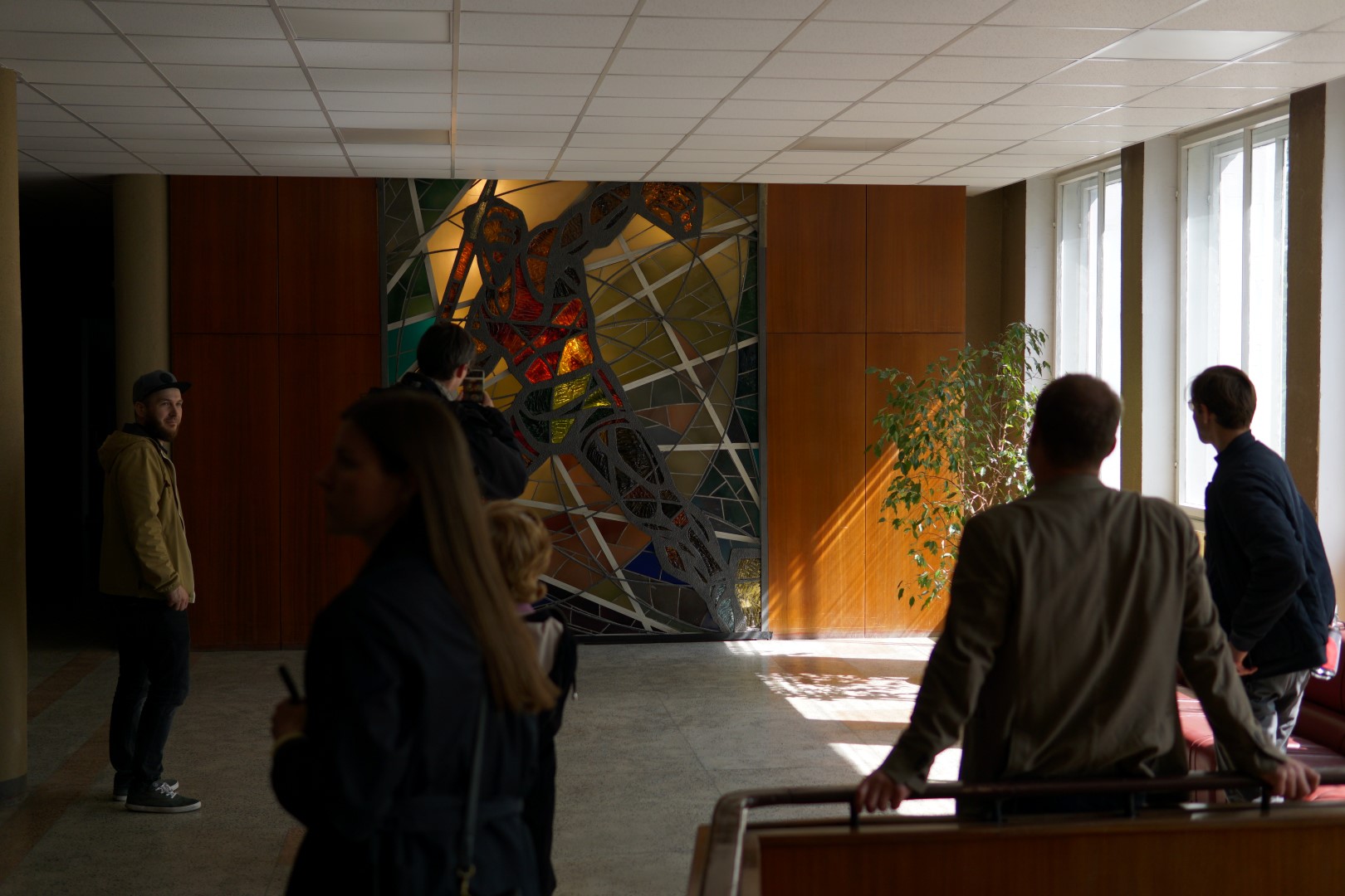 Galerejā latgalīšu navaļstiskūs organizaceju rūsynuota ekskurseja i diskuseja par “Latgolys parku” 2022. gods 27. majā. Foto: Amanda Anusāne