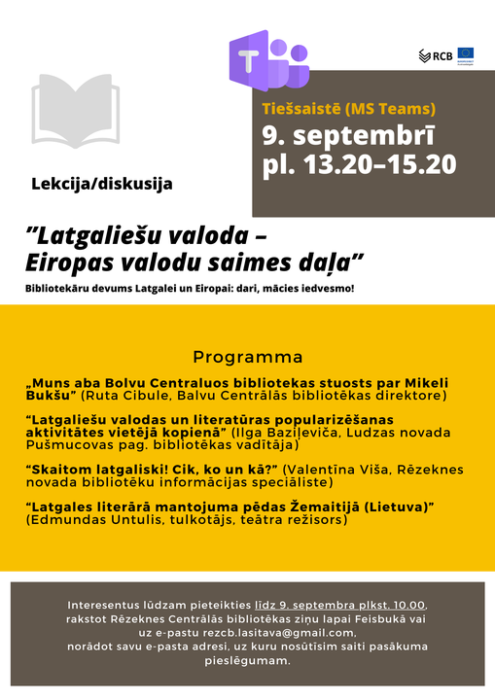 Rēzeknis Centraluos bibliotekys vadeituoja Ruta Suseja aicynoj: “Vysa pasuokuma programa byus cīši interesanta i pīsaslēgt tīšsaistī teik aicynuots kotrys interesents, naatkareigi nu profesionaluos pīdereibys.”