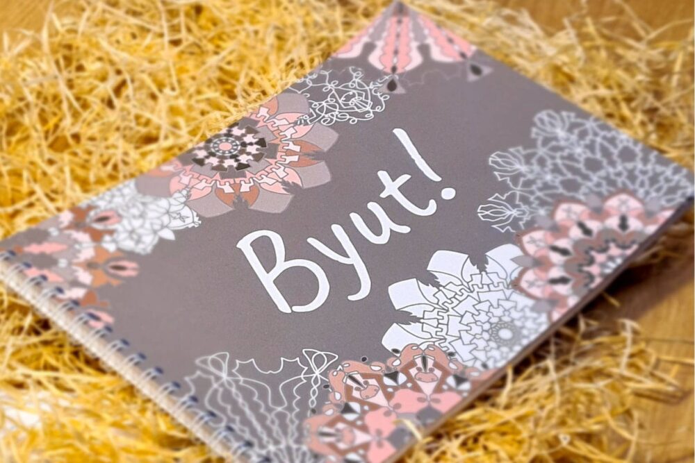 Izdūta pyrmuo kruosojamuo mandalu gruomota latgaliski “Byut!”. Tuos autore ir Kristiāna Rancāne, kura dorbojās sovā mozajā uzjāmumā “SimplyLove”, rodūt vysaiduokys īdvasmys gruomotys i uzleimis.