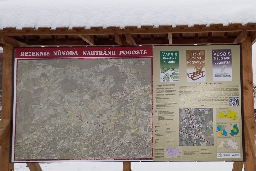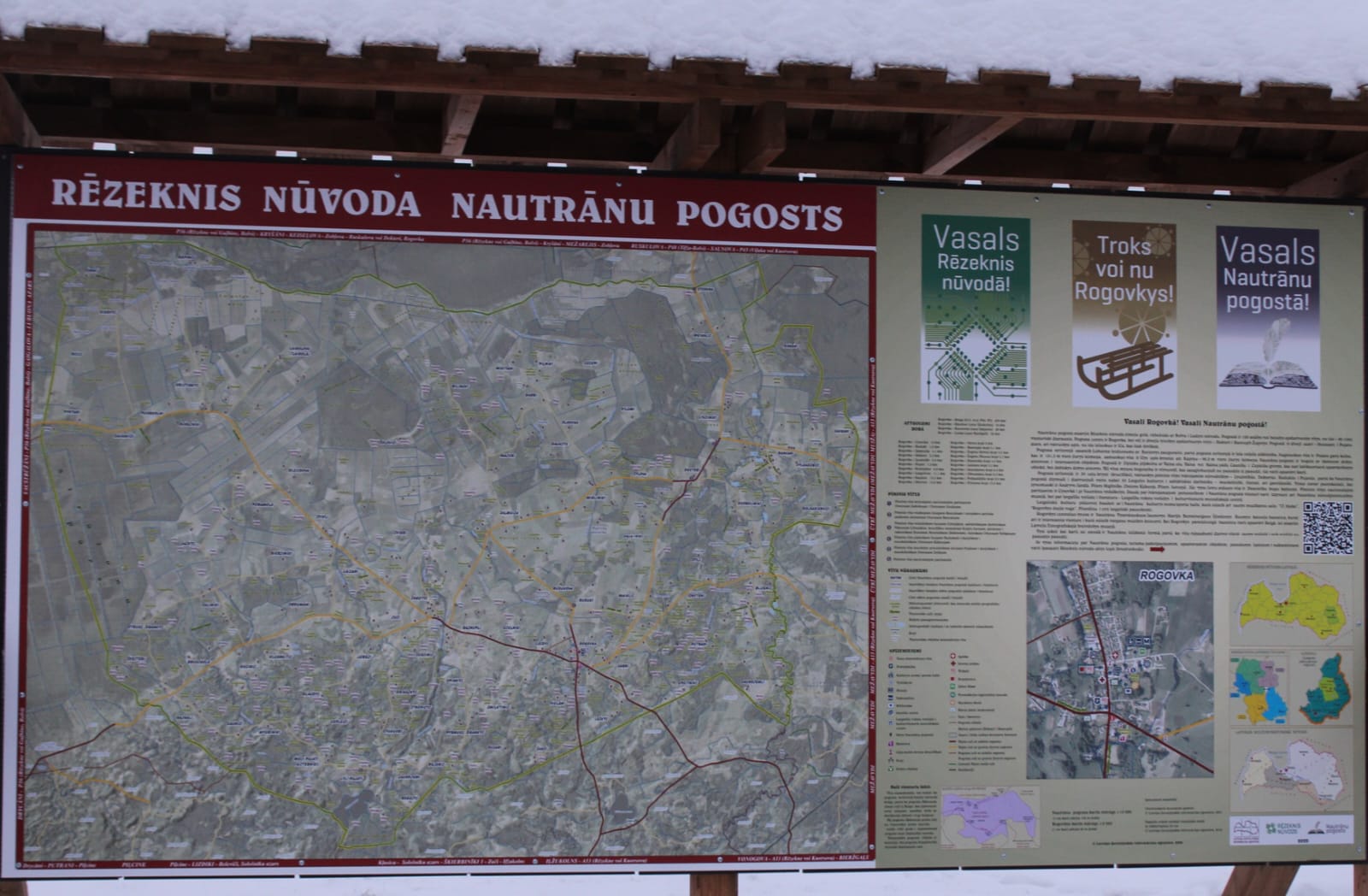 Kai stuosta Nautrānu apvīneibys puorvaļdis kulturys centra vadeituoja Inga Vigule, dūma par Nautrānu pogosta karti beja jau seņ, tik vysu laiku tyka atlykta. Itūgod Rēzeknis nūvoda pošvaļdeiba izsludynuoja Latgaliskuos identitatis atbolsta programu, i tyka nūlamts karti taiseit latgaliski. Ari latgaliskī baneri Rogovkā pasaruodeja taišni, pasasokūt itai pošvaļdeibys izsludynuotajai programai.