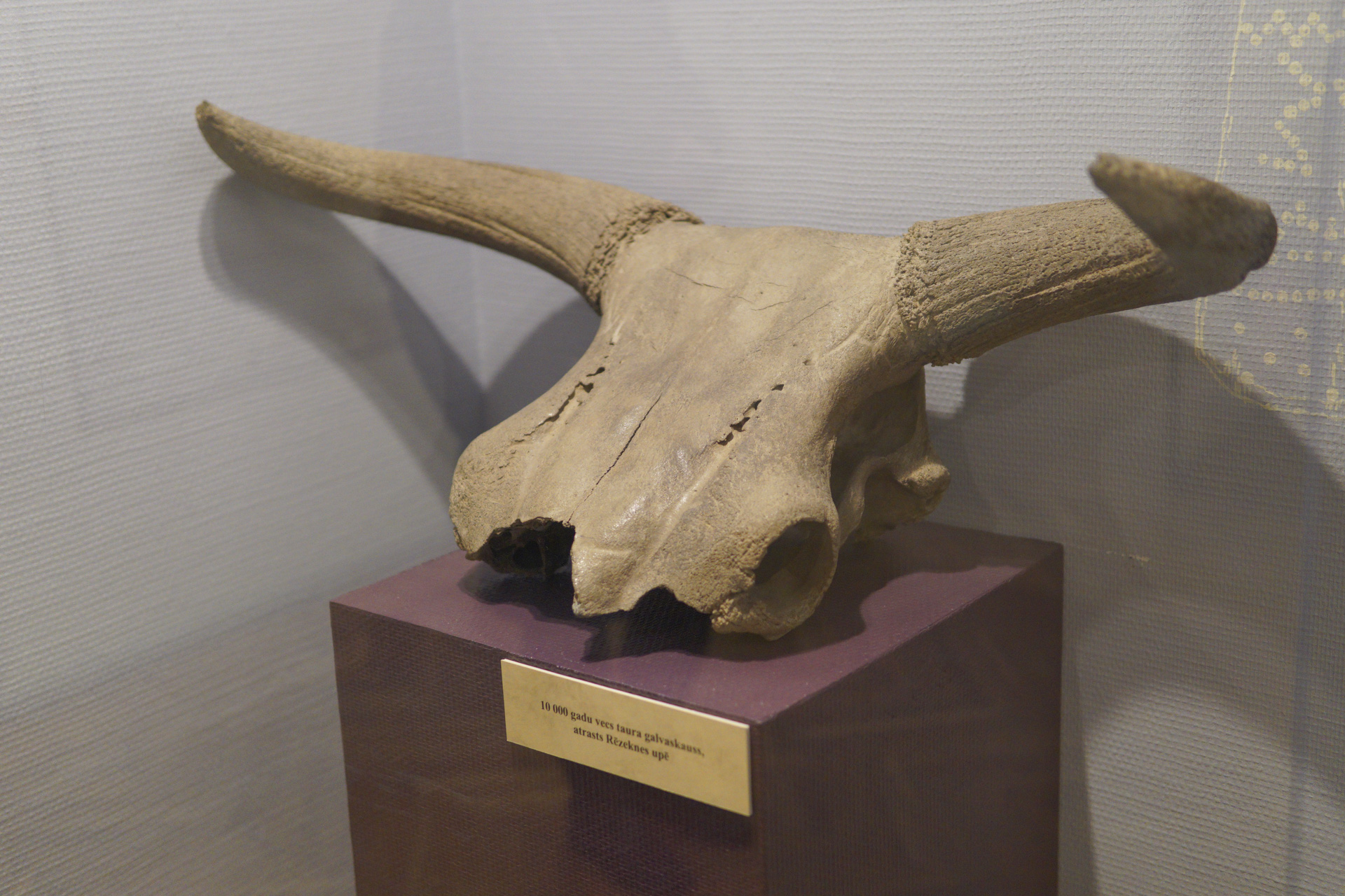 Kai pyrmū LKM kruojuma duorgumu Anna Līpenīte nūsauc vīnu nu muzeja viesturis ekspozicejis “Rēzekne laikmetu griežos” radzamuokūs eksponatu – pyrmatniejuo taura golvyskausu. Tys ir apmāram 8-10 tyukstūšys godu vacs, jis ir bejs tieveņš i sviers vaira par tonnu. Nazkod tauri beja cīši izplateiti i apdzeivuoja kai Eiropu, tai ari Azejis i Zīmeļafrikys leluokū daļu. Latvejis teritorejā jī beja sastūpami leidz 12. godu symtam, tok vyspuor pādejais itaids taurs sovu myužu beidzs 1627. godā Pūlejā. Pyrmatniejūs taurus skaita par myusu dīnu lellūpu prīšktečim.