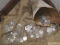 1983. godā Rēzeknis Upis īlys kopūs, rūkūt jaunu dūbi, storp akminim tyka atrosts ierstūšs drēbis i tuoss saineits ar monetom. Izaruodeja, ka tuos ir Livonejis laika monetys. Depozitā ir 447 monetys – 15 pusmarkys, 28 feneni, bet puorejī ir šileni. Anna Līpenīte atguodynoj, ka leidz 16. godu symtam myusu dīnu Latvejis i Igaunejis teritoreja atsaroda Livonejis sastuovā. Depozita vierteiba nateikūt skaiteita par lelu, tok, kai soka Anna, piec 16.g.s. 60. godu cenu par itū naudu varēja nūpierkt pusbucu svīsta (i vēļ sajimt atlykumu) voi 25 cyukys, voi 51 vušku. Interesanti, ka vaira nakai 20 nu itūs monetu ir ar caurumu vydā. Tys skaidrojams ar tū, ka piec naudys izjimšonys nu apgrūzeibys, nu tuos taisejuši rūtuojumus. Monetys hronologiski aptver vīnu godu symtu, gondreiž vysys nu tūs ir koltys Livonejā. Kai nūglobuošonys veids, tai vīta (16. gs. Upis īlys kopu vītā asūt bejs klajš lauks) līcynojūt, ka tū izdarejs zemnīks. Viesturnīki secynoj, ka tys nūtics Livonejis kara laikā, jau piec 1561. gods, kod Vuocu ordiņa Livonejis atzors jau juts naizbāgamū sakuovi. Tymā laikā jau vairuokys Livonejis piļs beja īkīluotys Pūlejai, tymā skaitā Rēzeknis piļs. Vystycamuok, ka zemnīks monetys globuojs, beistūtīs nu laupeišonu.