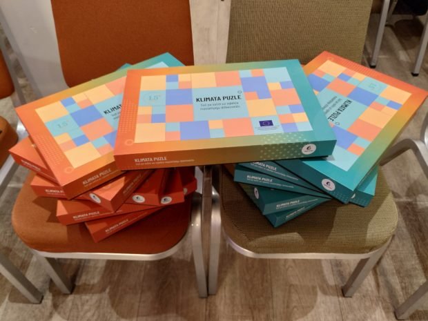 Bet, cikom pošvaļdeibu specialisti vēļ tik plānoj pīsalāguošonys strategeju izveiduošonu voi atjaunuošonu, navaļstiskais sektors jau aktivi dorbojās. Lai ari Reigā sarunys ar sabīdreibu par klimatam draudzeigu dzeivisveidu ir dīzgon īrosta līta, Latgolys regionā taidu sarunu nav bejs daudz. Kab vīnkuoršuok byutu saprast tū, kaidys kasdīnys reiceibys atstuoj leluoku klimata pādu, bīdreiba “Zaļā brīvība” ik pa laikam aicynoj iz Klimata puzlis spieliešonu. Klimata puzli izstruoduoja “Zaļās brīvības” sadarbeibys partnerorganizaceja D-mat nu Suomejis, sovpus “Zaļā brīvība” tū pīlāguoja situacejai Latvejā. Puzlis likšonys suokumā ir juoizriekinoj sova dzeivisveida ūglekļa pāds, izmontojūt Pasaulis Dobys fonda izstruoduotū kalkulatoru. Tod nu puzlis kastis izjem puzlis laukumu i reiceibu karteitis, i puzlis likšona var suoktīs!