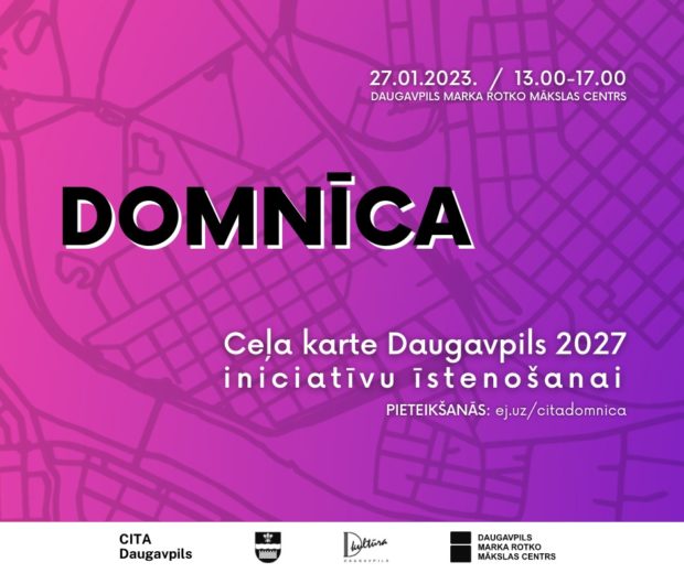 Ituos nedelis pīktdīne varātu byut ideala dīna gasteišonai Daugovpilī i kulturys sektora aktivistu sasatikšonai! Bīdreiba “Cita Daugavpils” kūpā ar Daugovpiļs pošvaļdeibys Kulturys puorvaļdi 27. janvarī nu 13.00 leidz 17.00 stuņžu Marka Rotko muokslys centrā organizej dūmneicu “Ceļa karte Daugavpils 2027 iniciatīvu īstenošanai”. Itys ir pyrmais naseņ dybynuotuos bīdreibys organizātais pasuokums, kas pīsoka jaunu pūsmu Daugovpiļs kulturvidis veiduošonā, kas byus baļsteita navaļstiskā leidzdaleibā.