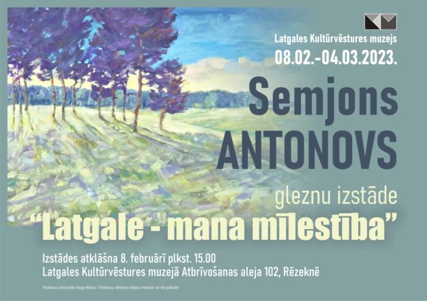 8. februarī 15.00 stuņdēs Latgolys Kulturviesturis muzejā atkluos Semjona Antonova gleznu izstuodi “Latgale – mana mīlestība”, kas veļteita muokslinīka 75 godu jubilejai, informej muzeja puorstuove Svetlana Dudarenoka.
