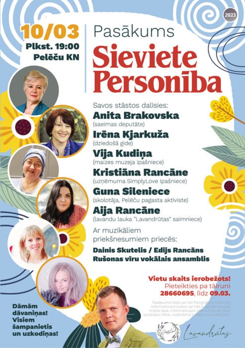 Nūteikti pyrmais, kū varātu īsaceit, ir breineigs pasuokums Preiļu nūvoda Pelieču kulturys nomā. Pasuokums nūtiks 10. martā, tam dūts skaneigs nūsaukums “Sieviete Personība”. Ar stuostu par sovim sapynim i tūs realizaceju daleisīs Saeimys deputate Anita Brakovska, dzīdūšuo gide Irēna Kjarkuža, Maizis muzeja eipašneica Vija Kudiņa, školuotuoja i Pelieču pogosta aktiviste Guna Sileniece, lavandu lauka “Lavandrūtas” saimineica Aija Rancāne, kai ari es, Kristiāna Rancāne. Pasuokums paradzāts na tik sīvītem, bet ari kungim. Pīsasaceišona ir leidz 9. martam, partū vēļ var paspēt rezervēt sev vītu i baudeit byušonu sūpluok Peliečūs, kur byus vareiba na viņ klauseitīs īdvasmojūšu sīvīšu stuostūs, tok ari baudeit talanteigu veirīšu muzykalūs prīšknasumus. Sasateikam, kab īsadvasmuotu kūpā!