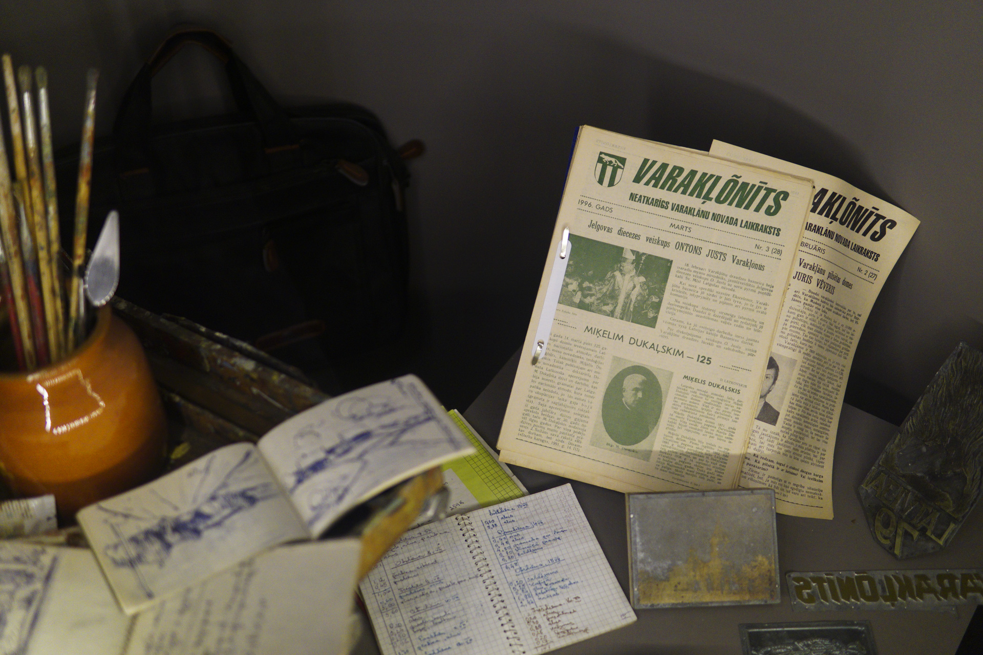 Galerejā Varakļuonu nūvoda muzeja kruojuma duorgumi i ekspozicejis. Foto autore: Amanda Anusāne/portals lakuga.lv
