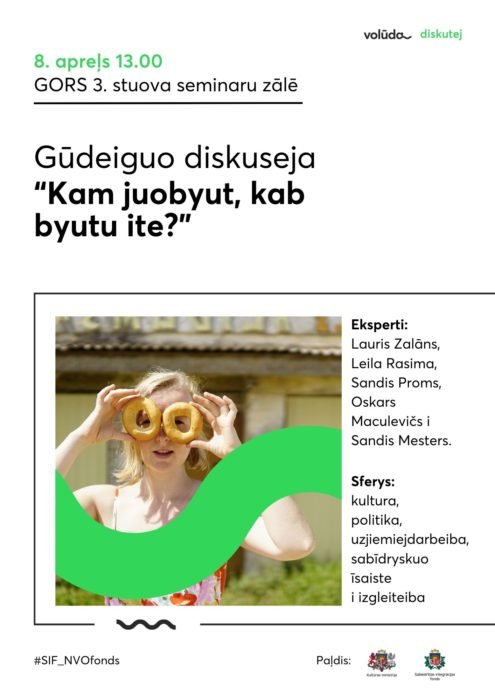 Kam juobyut, kab jaunīši dzeivuotu i grybātu dzeivuot Latgolā? Atbiļdis iz itū vaicuojumu Rēzeknē, 8. aprelī, diskusejā ar jaunīšim i dažaidu sferu puorstuovim – radejis personeibu Lauri Zalānu, Saeimys deputati Leilu Rasimu, uzjiemieju Oskaru Maculeviču, sabīdryskū aktivistu Sandi Mesteru i studentu puorstuovi Sandi Promu – raudzeis aktualizēt latgalīšu kulturys kusteiba “Volūda”.