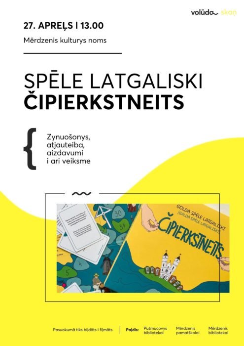 Latgolys kongresa dīnā Mērdzenis kulturys nomā i Rēzeknis Centralajā bibliotekā interesentim ir vareiba izspēlēt latgaliskū golda spēli “Čipierkstneits”. Iz spēli Mērdzenē aicynoj latgalīšu kulturys kusteiba “Volūda” i Pušmucovys biblioteka, bet Rēzeknē – poša biblioteka.