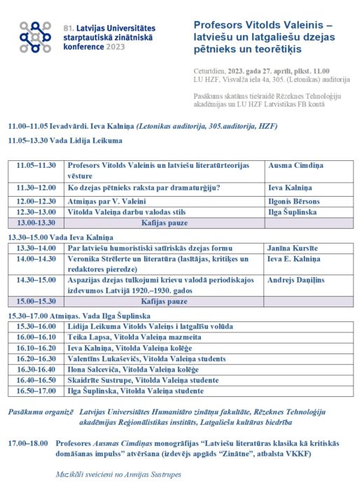 Zynuotniskuo konference “Profesors Vitolds Valeinis – latviešu un latgaliešu dzejas pētnieks un teorētiķis”