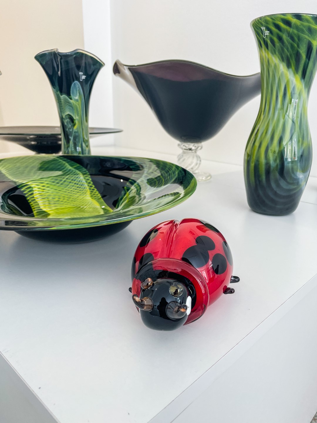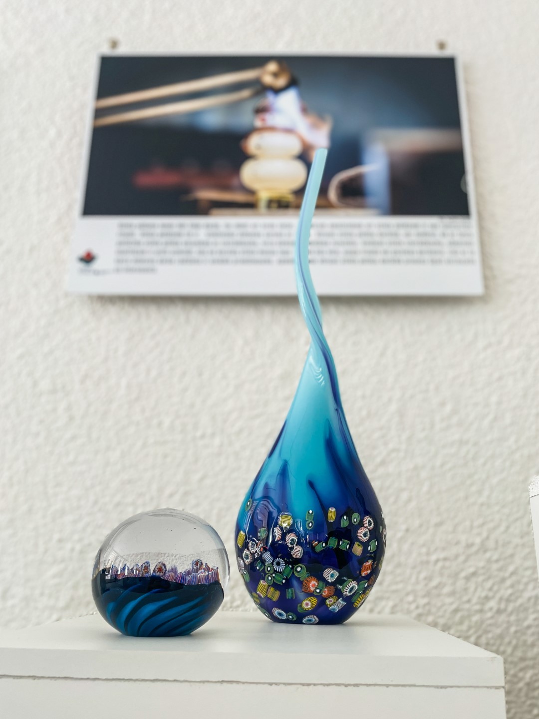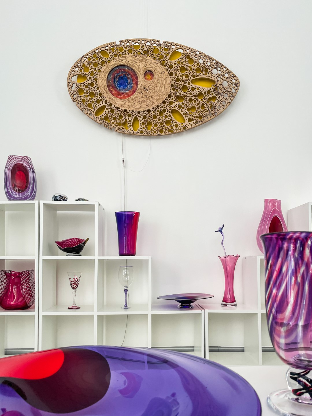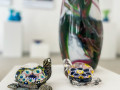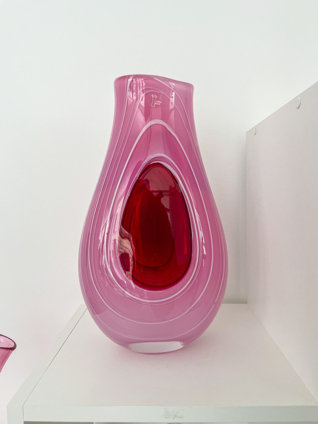 “Ite izapauž myusu stykla pyutieja Aleksandra Logvina fantazeja, jis ir golvonais amata meistars – pats izdūmoj i pats roda. Niu jis ir cīši aizaruovs ar senejom Venecejis stykla tehnikom. Veneceja itymā omotā godu symtim ir napuorspiejama i niu, pasateicūt vysim škārsteikla plotumim, mums ir vareiba apsavērt i pasavuiceit, kai ar styklu struodoj tī. Ite mes narunojam par taidu Leivuona styklu, kas byutu puormontuojs vacuos tradicejis, kaidu styklu nu Leivuona ir īrosts redzēt, mes vaira runojam par tū, ka ir sasaglobuojs stykla pyutieja omots i sasagloboj tradiceja, ka Leivuonā nūteik stykla izstruode kai taida,” stuosta Ilze.