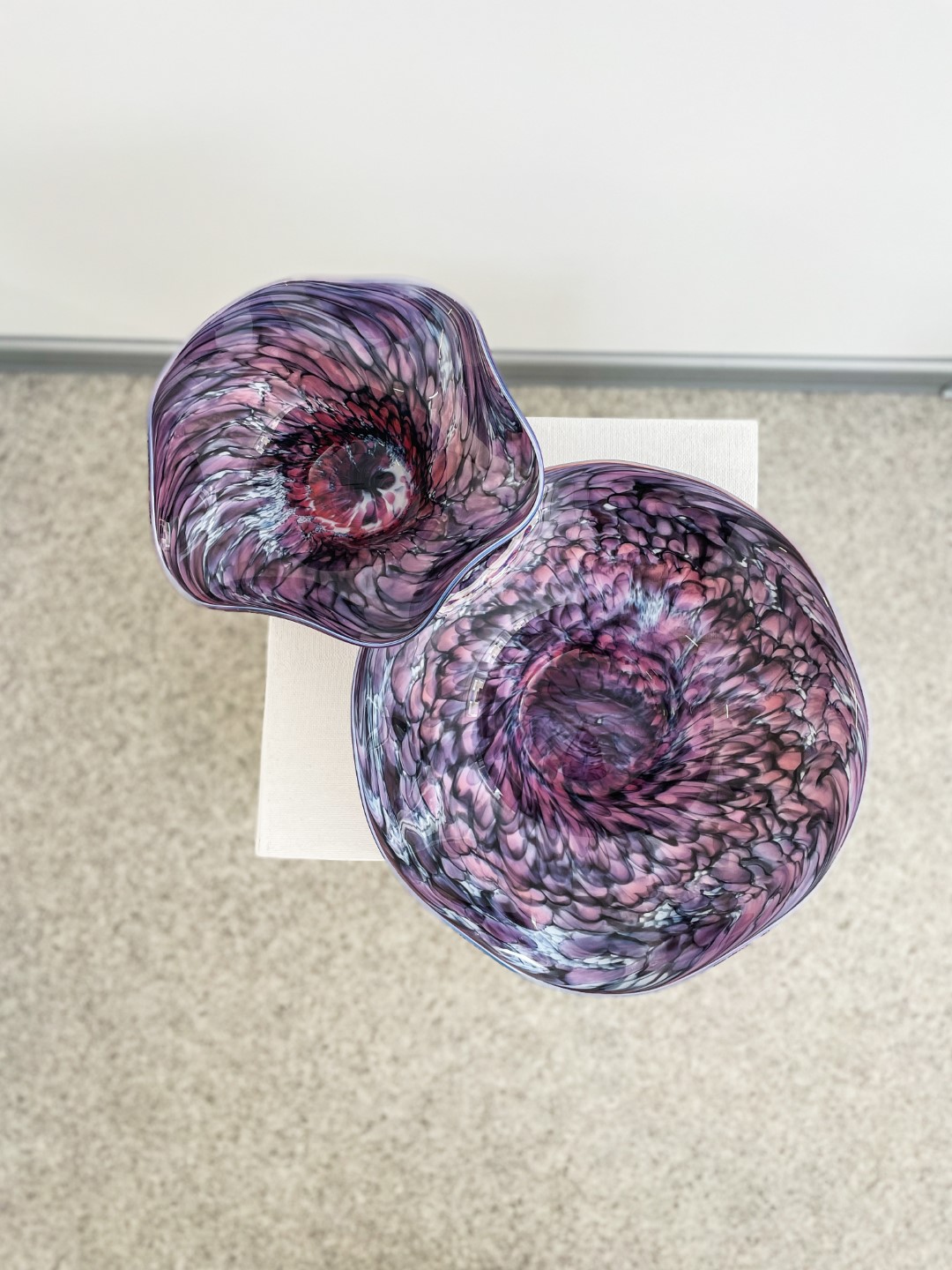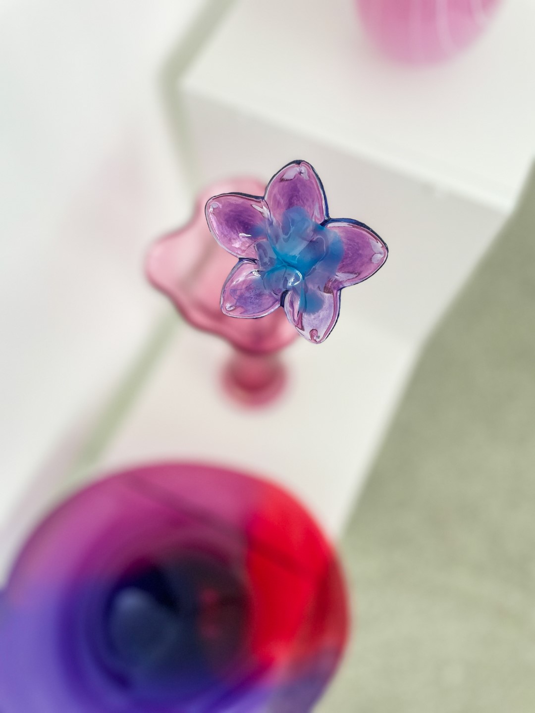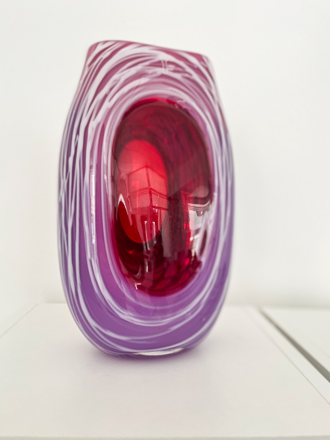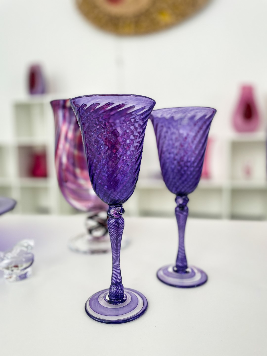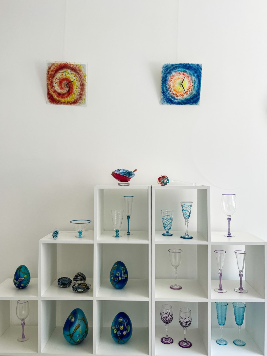 “Ite izapauž myusu stykla pyutieja Aleksandra Logvina fantazeja, jis ir golvonais amata meistars – pats izdūmoj i pats roda. Niu jis ir cīši aizaruovs ar senejom Venecejis stykla tehnikom. Veneceja itymā omotā godu symtim ir napuorspiejama i niu, pasateicūt vysim škārsteikla plotumim, mums ir vareiba apsavērt i pasavuiceit, kai ar styklu struodoj tī. Ite mes narunojam par taidu Leivuona styklu, kas byutu puormontuojs vacuos tradicejis, kaidu styklu nu Leivuona ir īrosts redzēt, mes vaira runojam par tū, ka ir sasaglobuojs stykla pyutieja omots i sasagloboj tradiceja, ka Leivuonā nūteik stykla izstruode kai taida,” stuosta Ilze.