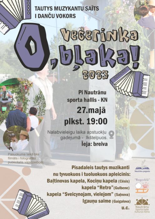 27. majā 19.00 stuņdēs Rogovkā, pi Nautrānu sporta hallis-KN (leita laikā – īšktelpuos), nūtiks jau 12. tautys muzykantu saīts i daņču vokors – večerinka “O, bļaka!”, informej tuos reikuotuoji.