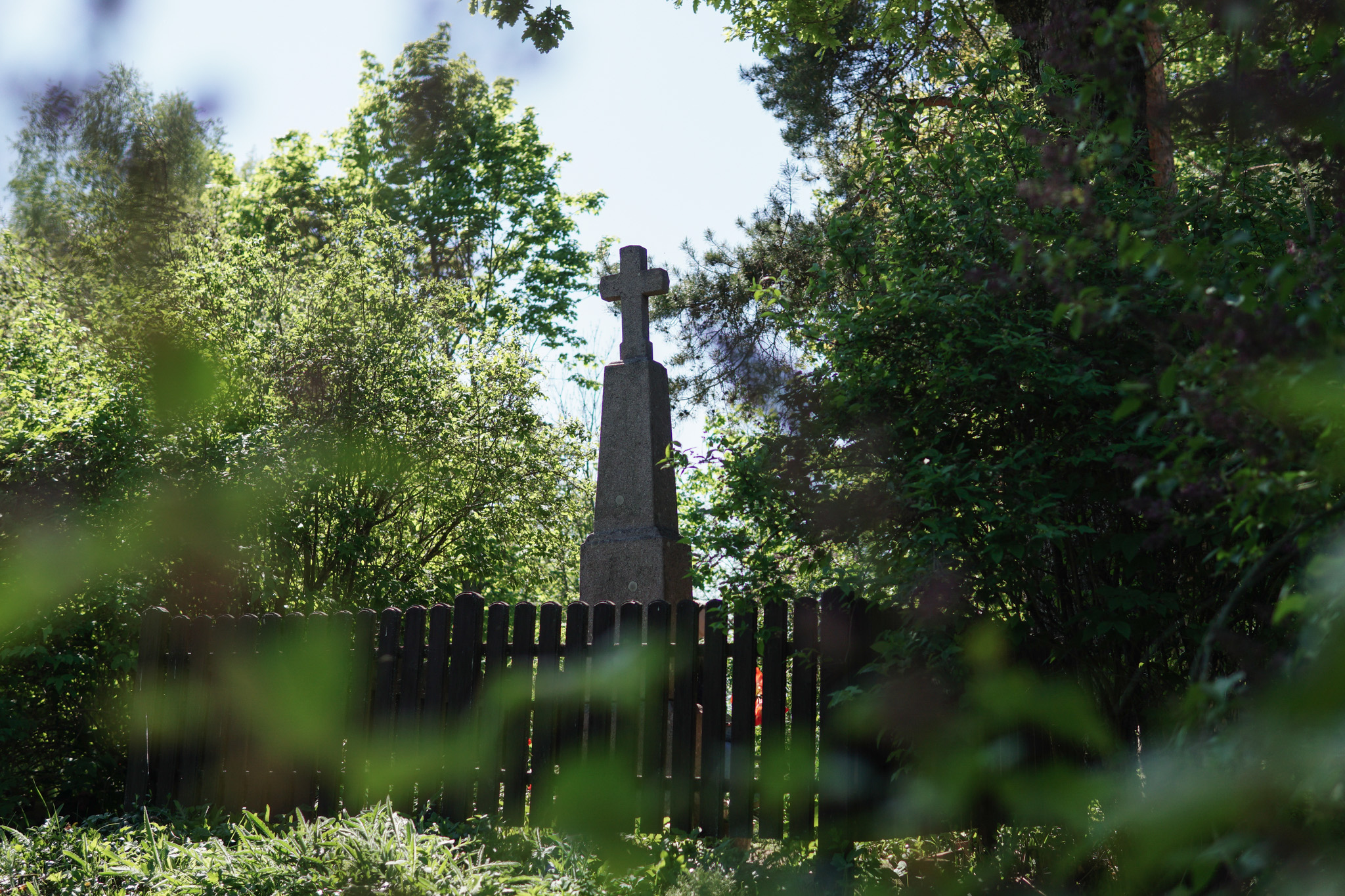 “Dauguļu” saimineica Anita laipni sagaida myus i lobpruot pastuosta kai par pošu krystu, tai par apleicejūs sātu i pogosta boguoteigū viesturi. Vazdama da kruficiksa, Anita stuosta, ka tū pastatejs juos vactāva bruoļs Voiceks Supe, kurs tics par bazneickungu, deļtam sev i Dīvam par gūdu izcieļs taidu pīminekli. Bazneickunga kuortā Vojceku īsvieteja 1936. gods 21. maijā, sovpus pīmineklis pastateits 1937. gods 24. septembrī.
