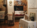 Taipoš ir ari atseviška ustoba, kur globojās latgaliskuos sadzeivis lītys, kur ari kotrai ir sovs stuosts. Kai vīnu nu pīmāru Pličs paruoda muola bļūdeņu ar kūka karūteiti. “Tei ir tikpat vierteiga kai bazneicys svātbiļde. Tod, kod es pajamu jū rūkā, maņ zūsuoda sasamete. Tei bļūdeņa ir nūpalnim boguota. Ka mes zynuotu, cik daudz latgaļu saimeite nu tuos ir kuopustu i putreņu izāduse ar kūka karūteiti. Jei nav sapleisuse, jei ir nūdyluse. A cik meikstys malenis.” Sadzeivis lītu ustobā dzeivoj stuosti par tykumu, tradicejom, religeju, taupeibu i amatnīkim.