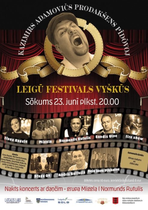 “Pyrma 2012. goda Vyšku estradē ari nūtyka Juoņu svieteišona, tok taidā pogosta mārūgā. Piec estradis atjaunuošonys gribiejom leiguošonys pasuokumu paceļt augstuokā leiminī. Pyrmī pasuokuma godi beja izteikti tautyskā stilā, tod ar laiku dabuojom leluoku organizatoriskū pīredzi i roduos ari ideja par kolhoza tematikys apspieliešonu, tai dzyma Kazimirs Adamovičs, kurs kotru godu īsasaisteja cytaiduokuos aktivitatēs. Mes poši naceriejom, ka festivals ar laiku dabuos tik lelu atsauceibu. Itūgod temys tyka maineitys vairuokys reizis, vys beiguos palykom pi tuo, ka Kazimirs raudzeis sovys prasmis kinys industrejā,” stuosta Rolands Gradkovskis, kurs kūpā ar Vyšku pogosta puorvaļdi, īsaisteitajim akterim i cytim nūzaris specialistim ir ari vīns nu scenareja autoru.