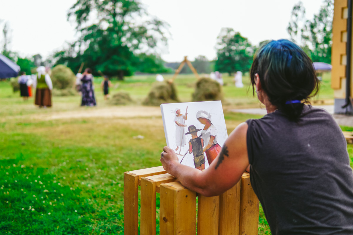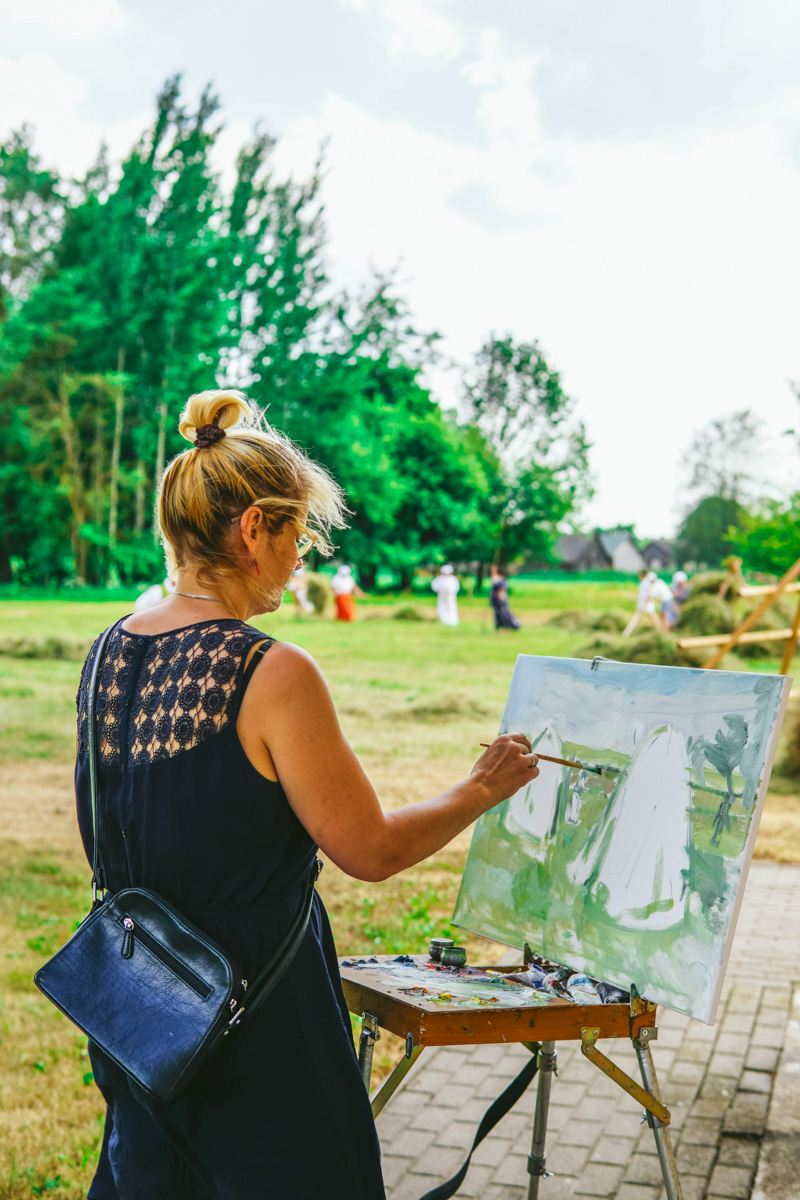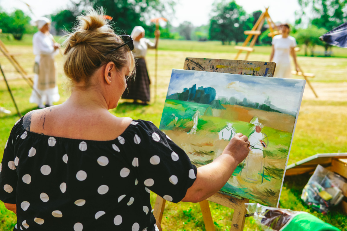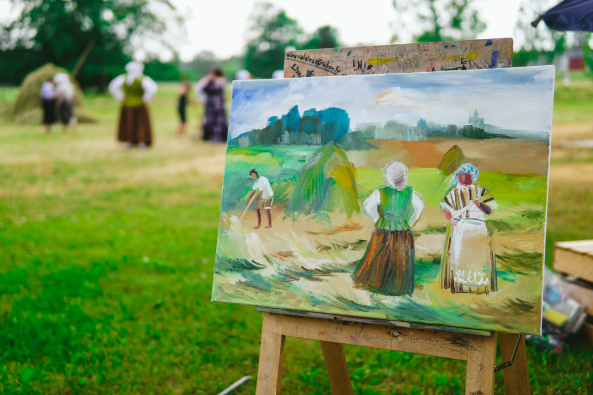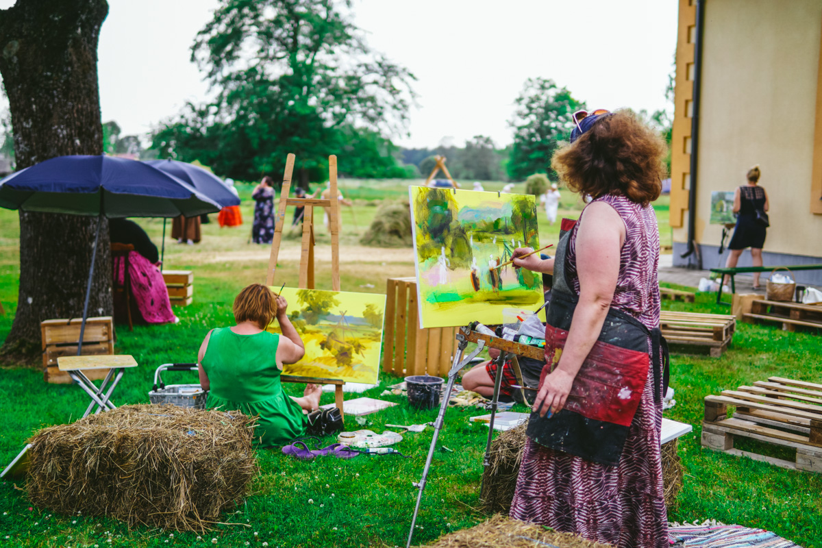 Itūgod sīna tolka ir eipaša, partū ka tolkuošonys pasuokums tyka apvīnuots ar muokslys pleneru, kurs pi cīma saīta noma nūtyka jau nedeļu. “Muokslinīki ite dzeivuoja, gleznuoja i šudiņ ir plenera nūslāgums, kod muokslinīki ite gleznuos myusu sīna tolku,” pastosta saīta noma vadeitoja Biruta.
