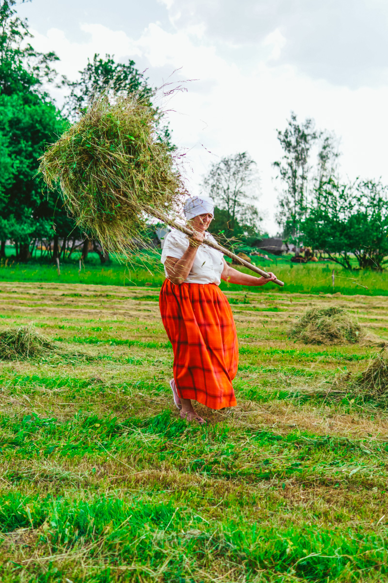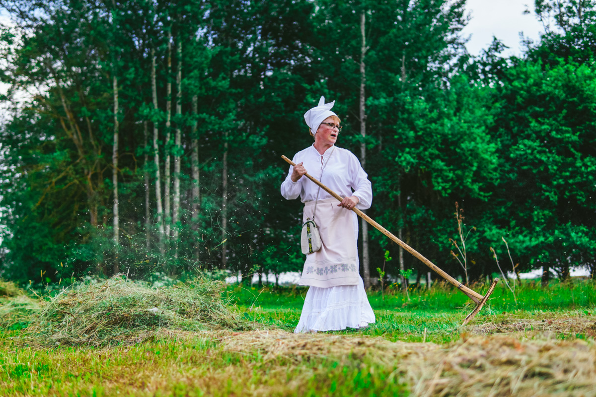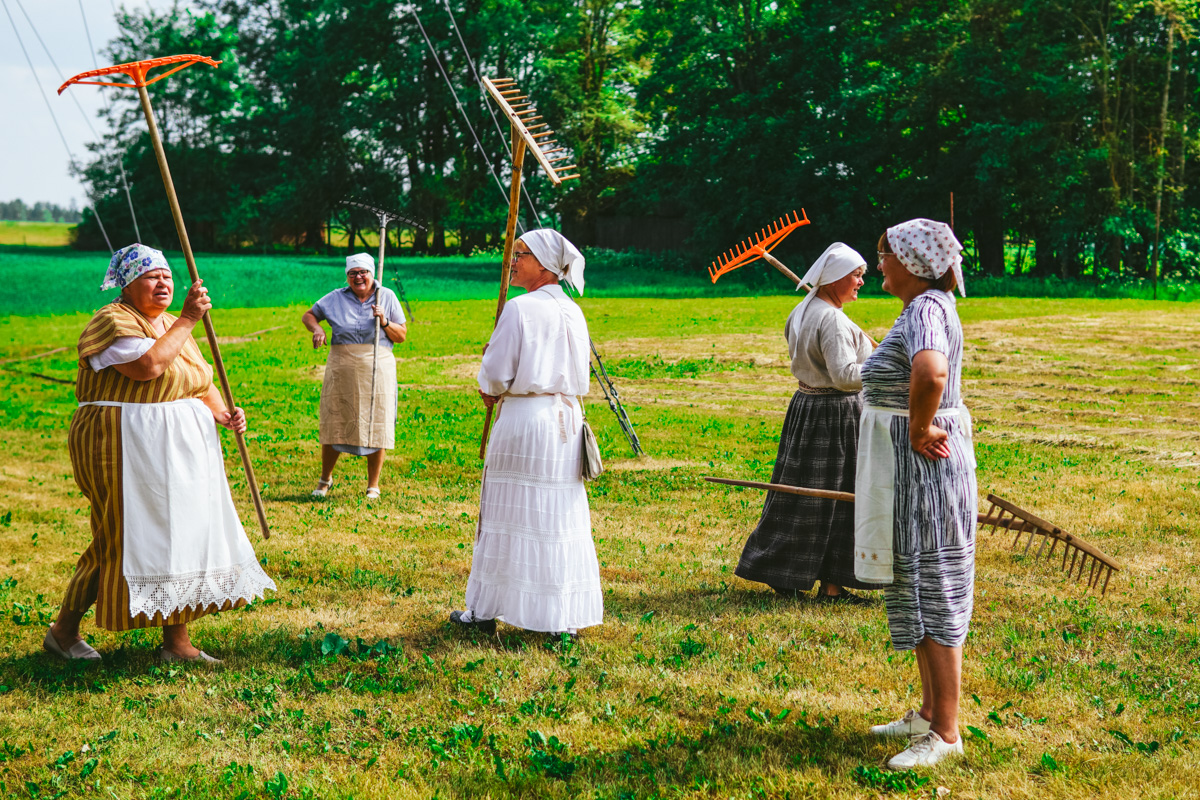 Folklorys kūpys dalineica Skaidreite pastuosteja, ka jai vysod sīna tolkys asociejās ar agrim reitim. “Seņuok cēlēs cīši agri. Mes, bārni byudami, ap sešim reita mūdamīs i guojom pļaut. Rosā ir osuoka izkapts. Sausu zuoli, ruodīs, nikod ari napļaun, viņ mytru agri nu reita.”
