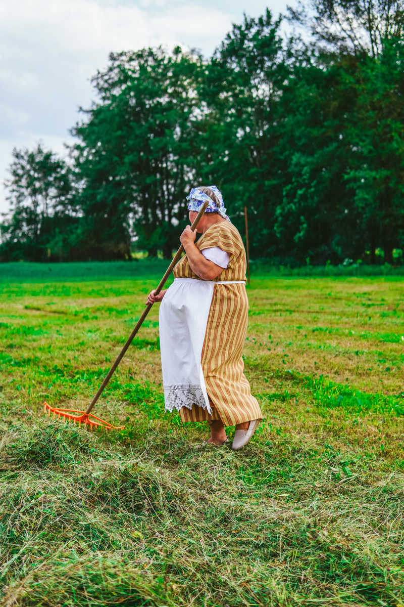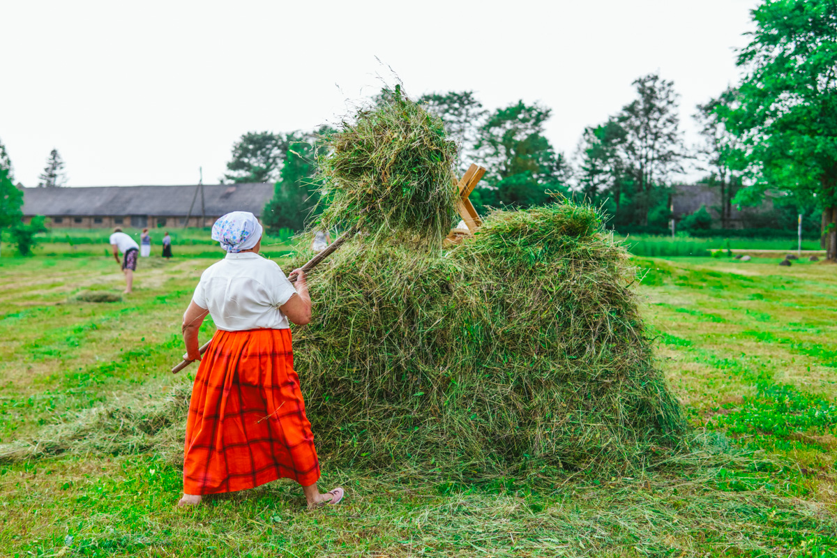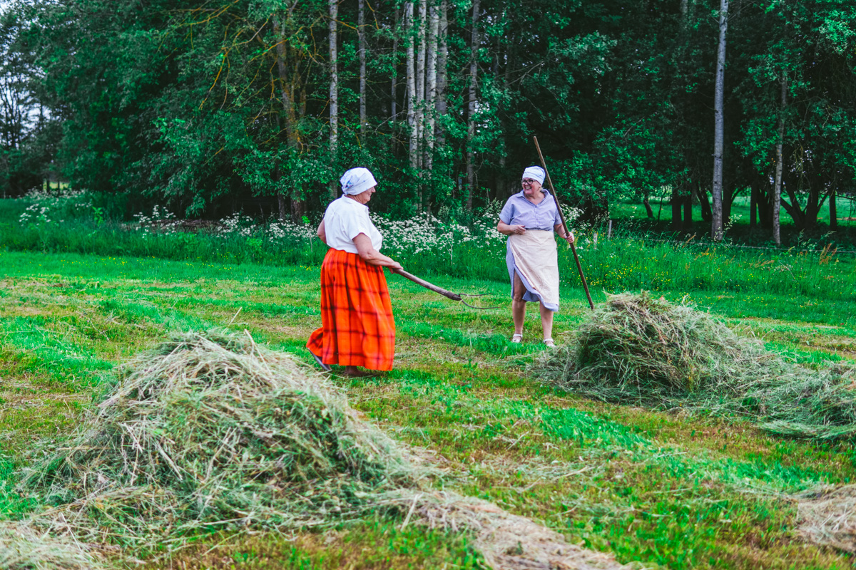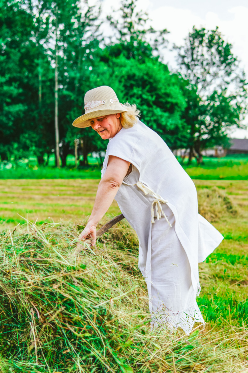 Folklorys kūpys dalineica Skaidreite pastuosteja, ka jai vysod sīna tolkys asociejās ar agrim reitim. “Seņuok cēlēs cīši agri. Mes, bārni byudami, ap sešim reita mūdamīs i guojom pļaut. Rosā ir osuoka izkapts. Sausu zuoli, ruodīs, nikod ari napļaun, viņ mytru agri nu reita.”
