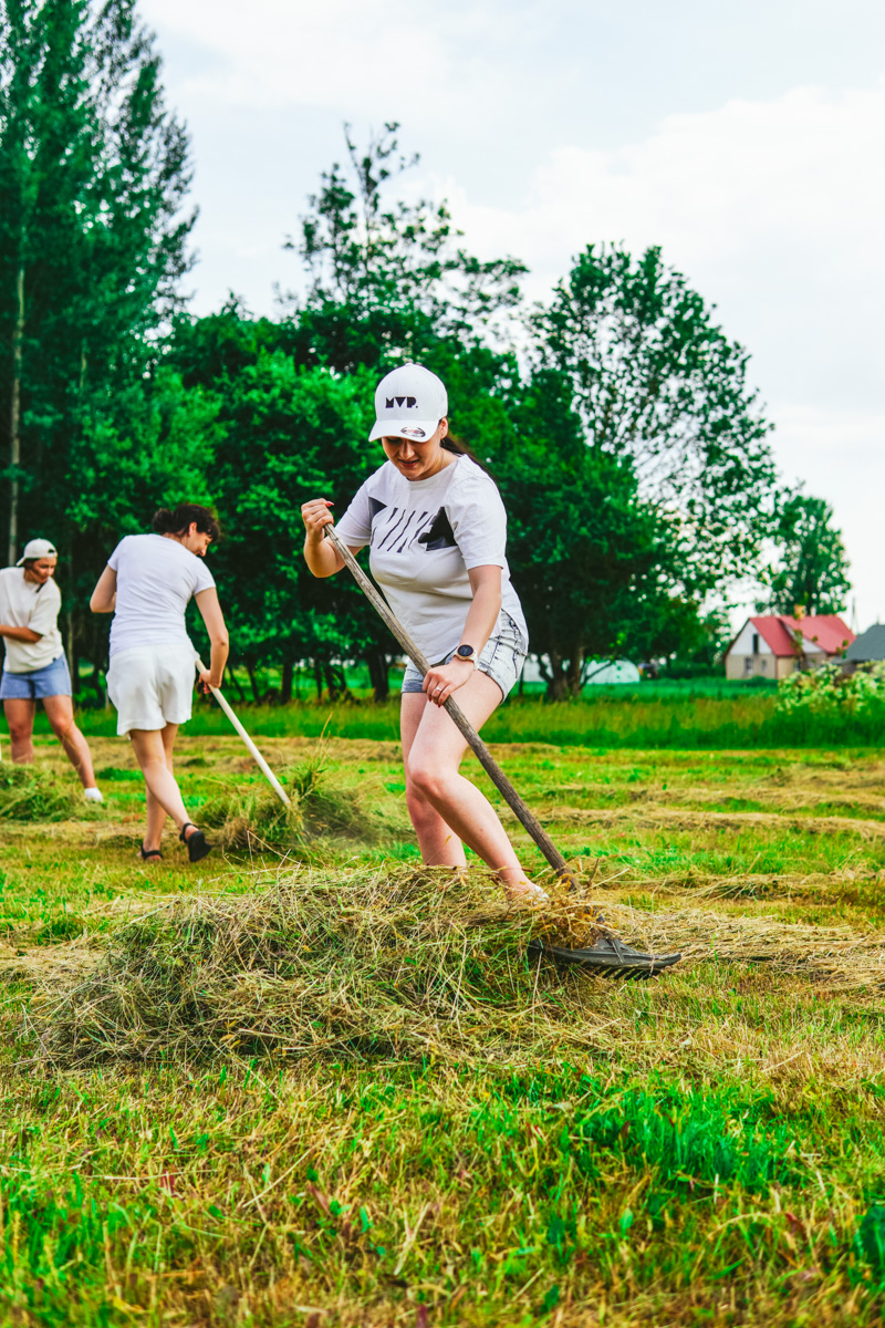 Tolcuonus dorbā pavadeja folklorys kūpys “Turki” dzīduojumi, kas padareja struodnīku sūli dreižuoku. ““Gruobu sīnu vysu dīnu, gruobu sīnu vysu dīnu…” dzīd kūpys puorstuove Skaidreite. Jei ari pastuosta, ka kūpā ar veiru ir puorkrauts na vīns viņ sīna vazums. “Zyrga vazumi, traktora vazumi tai, ka knapi redzi, kur ir augša i kur tu pats esi,” smejūtīs stuosta dzīduotoja Skaidreite.